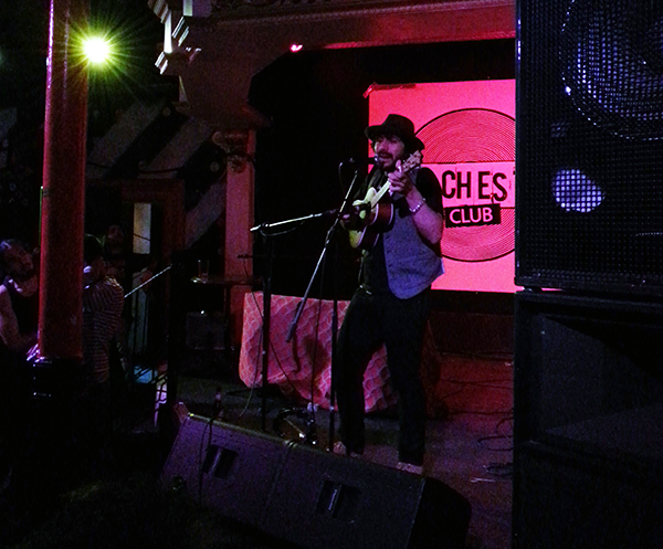 Con esa incertidumbre y aliciente me acerqué a verlo por quinta vez el pasado sábado. En el escenario, mientras salía, vi colocadas dos acústicas, el ukelele, un dobro, piano, una pandereta puesta como pedal de pie… Intenté imaginar los temas viejos con esas texturas… No terminaba de verlo claro. Albertucho salió al escenario cubata en mano (igual era Nestea), sombrero colocado y se sentó al piano para realizar una exquisita y valiente introducción. Con un sonido más que aceptable (es el concierto con mejor sonido que he escuchado en Madchester Club, quizá porque la orientación era distinta), y alrededor de un centenar de personas bien agrupadas alrededor del escenario, no había excusa posible.