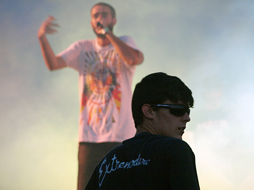 GruaEl primer acierto, la colocación del escenario con el espectacular paisaje de fondo de la aridez de la sierra y una gigantesca grúa instalada para hacer bungee jumping (saltar, vamos). La sensación de ver a Narco, el primero de los grandes en actuar y que empezó su concierto aún de día, pasadas las ocho de la tarde, y ver ese fondo y a valientes saltando desde casi 90 metros era un espectáculo digno de elogio.