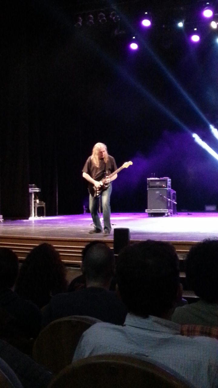 La comodidad fue manifiesta. Salado Rafa Vegas dándose un paseo en un par de temas entre las butacas del auditorio, al que rodeo en círculo. También Rosendo, que habiendo tocado en la fiestas de la ciudad en agosto varios años preguntaba “¿Cómo va la feria, Almería?”.