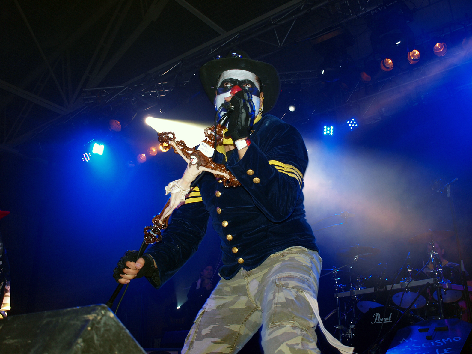 También fue curioso lo de El Noi Del Sucre. Creo que en más de una década que llevo de festivaleo jamás lo he visto actuar a una hora tan temprana como la del pasado sábado en Ayora. Pasadas las nueve de la noche, el artista sevillano salió caracterizado como soldado del séptimo de caballería y con la cara repleta de maquillaje como suele, con una hiperactividad y entrega que todos esperamos de él. Desde la entrada pseudo country y enérgica de ‘Los Miserables’ hasta la continuación de ‘Ave Fénix’, ‘¿Por Quién Doblan Las Campanas?’, ‘Lágrimas de Sangre’, ‘Ni Dios Ni Amo’… Podemos estar más de acuerdo o no con sus opiniones fuera del escenario, pero cuando se sube encima, es un ciclón que arrolla y se lleva todo por delante. Tablero de ajedrez, crucifijo y foto del príncipe Felipe incluidas. De hecho, confirmó algo que vengo apreciando en los últimos tiempos, y es que habla menos en los conciertos. Esto permite que tengan mucho más ritmo y que la adrenalina sea constante, algo que se le achacaba con frecuencia. “Me lo ha dicho mi psicólogo”. Crack, Lorenzo.