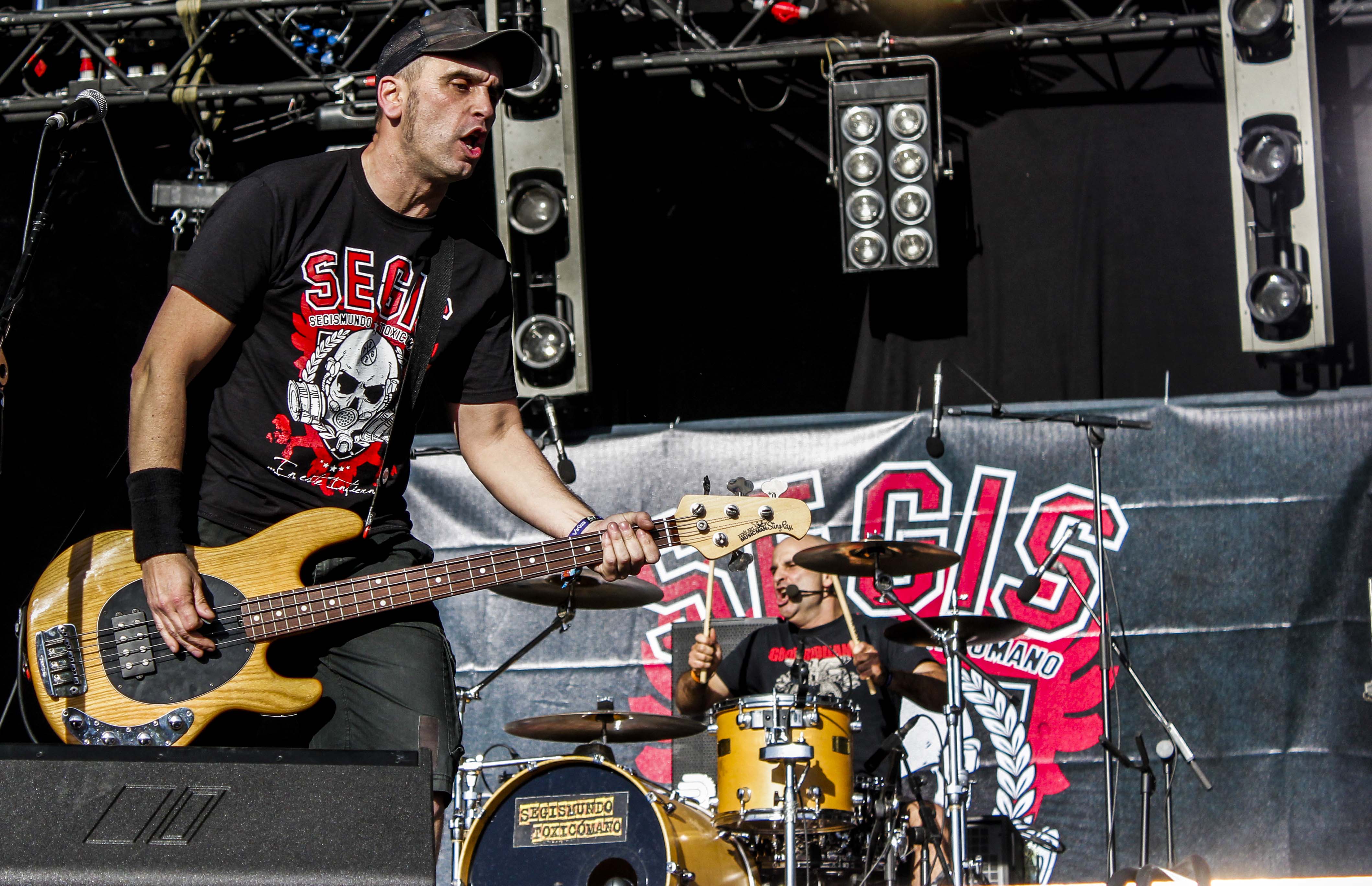 Segismundo Toxicómano, los Segis, por abreviar, se plantaron a las siete y media de la tarde dispuestos a terminar de incendiar gargantas. Y vaya si lo hicieron. A diferencia de lo que comentaba ayer con Kaótiko, los Segis te mantienen en vilo, al salto y al grito todo el concierto. Su ritmo es como galopar a caballo y sus canciones están tan bien hilvanadas entre fraseos y estribillos que es imposible no cantar con ellos. Incluso los temas nuevos del primero de sus tres EP’s nacen impregnados de ese espíritu. Sonaron ‘En Este Infierno’, ‘Perros’ y ‘Alerta!’. No chirriaron entre canciones que son como un cóctel molotov lanzado con fuerza, ‘Hoy Como Ayer’, ‘Una Bala’ (salto vertical irrefrenable), la siempre intensa ‘Odio’, o las más melódicas ‘Mi Vida’ o ‘Por Ti’. Mientras tanto ‘Las Noches Siguen Sabiendo A Sangre’, una de esas instrospectivas que, por poco frecuentes, parecen impropias del grupo, ha ganado un peso que merece por colocación en el set, justo antes de cerrar con el aquelarre de ‘Mis Drogas’. Siempre efectivos.