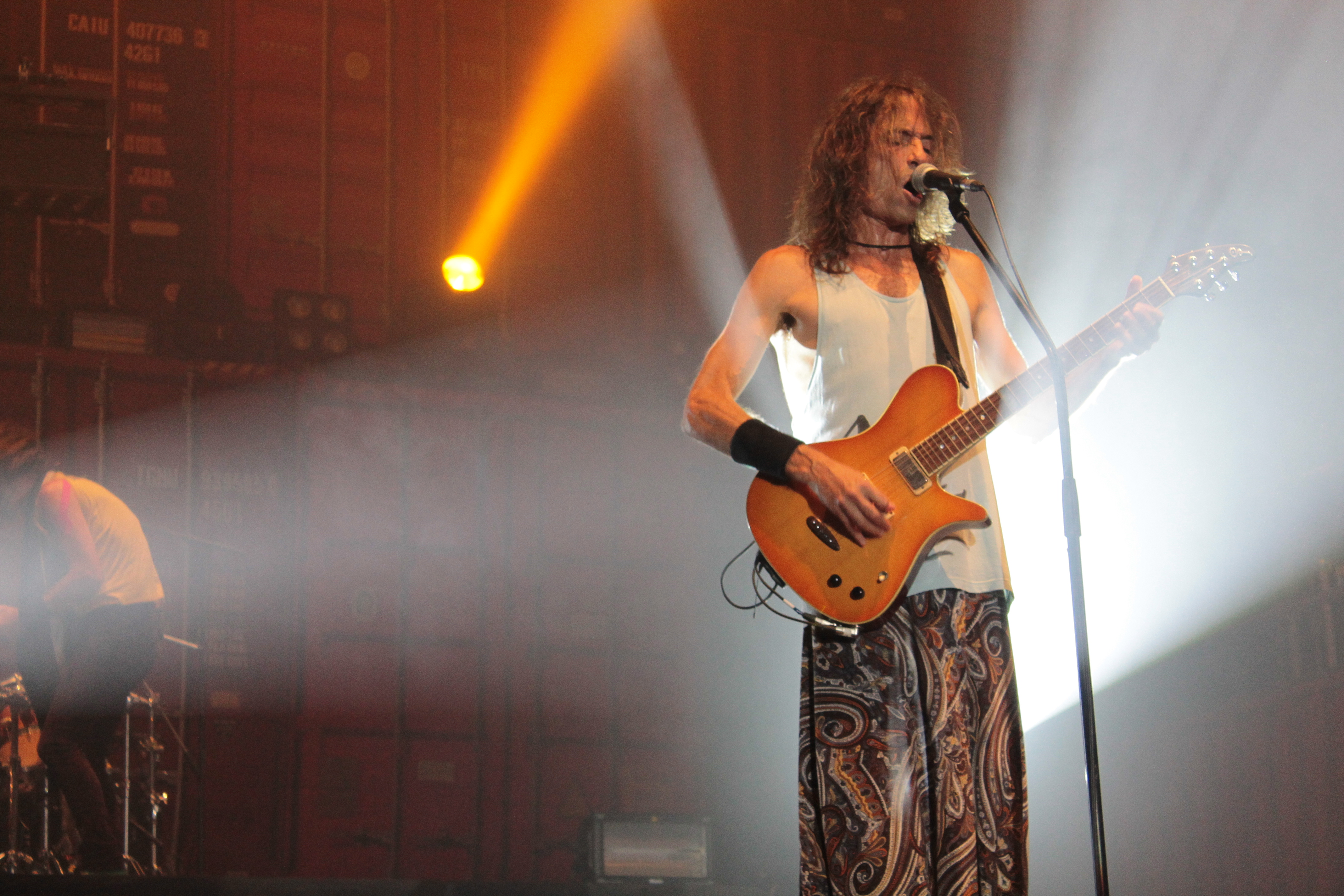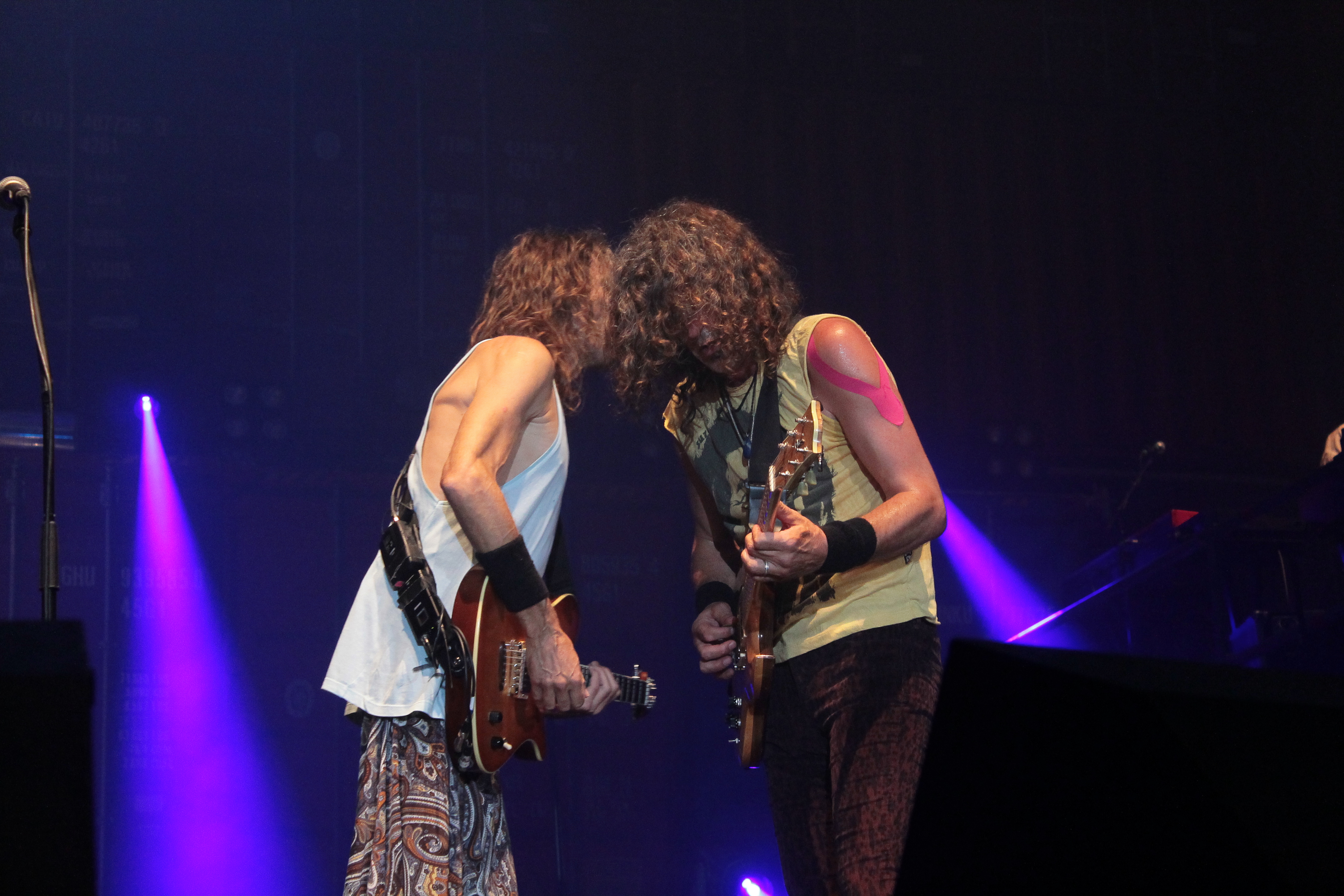 El primer tramo de concierto, antes de su tradicional descanso, se completó con ‘La Vereda de la Puerta de Atrás’, coreada en salto, la canción inédita que han incorporado en esta gira, ‘Canta La Rana’ y un generoso fragmento de ‘La Ley Innata’, la ópera-rock conceptual con la que dieron el salto definitivo hacia los arreglos complejos y los desarrollos extensos. Incluso con un par de estrofas nuevas que completan la historia de caos introspectivo. Como temor, entre ‘Calle Esperanza s/n’ y ‘Locura Transitoria’, Robe mandó plegar filas. No sabíamos si había ocurrido algo y tras lo sucedido en Salou la incertidumbre siempre queda. Pero tras un tiempo que se hizo largo volvió para introducir su ‘Locura Transitoria’. Falsa alarma, la mecha seguía su curso.