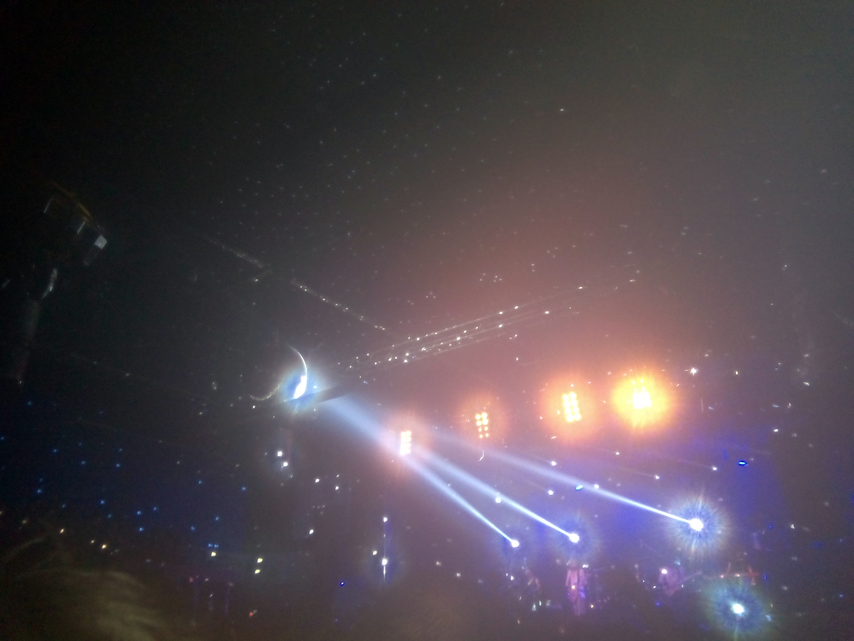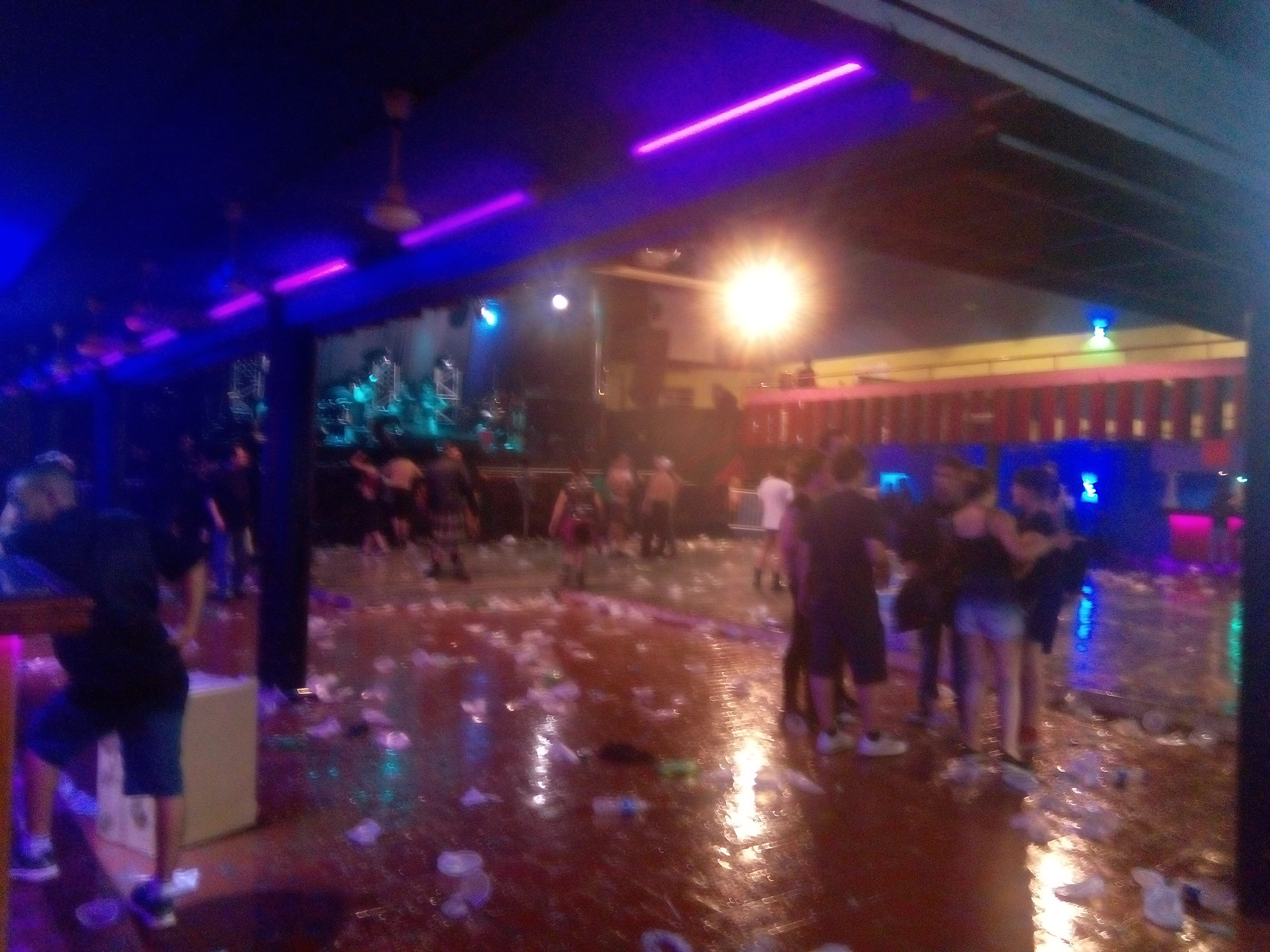 El esperado día no llegó sólo, una lluvia torrencial empapó a todos los que fuimos al concierto al sur de la ciudad. Al entrar, nos encontramos con una sala de conciertos a oscuras y abarrotada de gente. La razón de hacer el concierto en el conourbano –prácticamente en el límite de la capital- es para evitar que posibles disturbios destrocen la ciudad; y para que se permita vender cerveza en el concierto, pues si el evento, al ser de riesgo, se hubiera celebrado en un recinto céntrico, el alcohol hubiera estado prohibido.