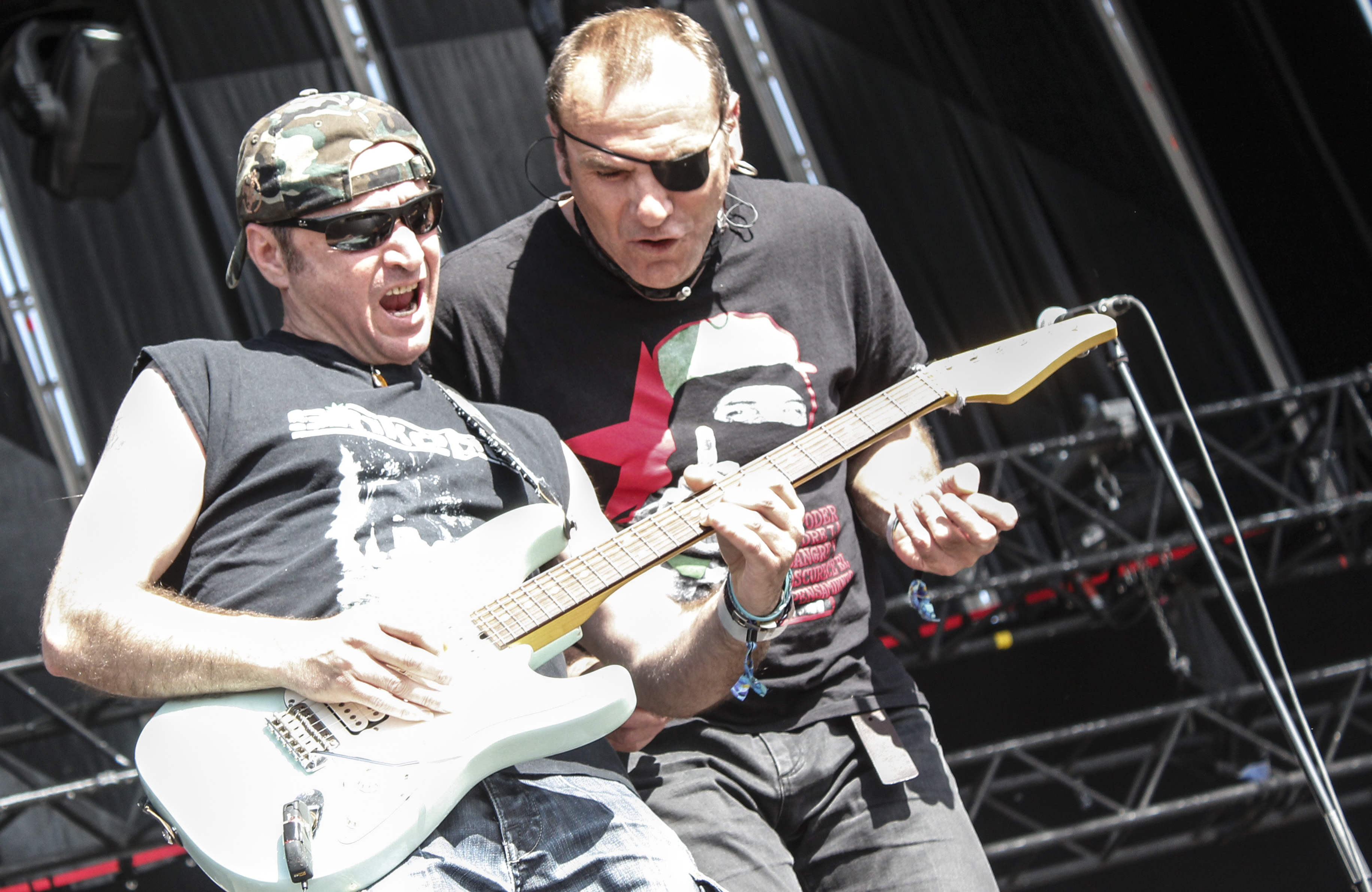 Cambiando de manera radical de registro, a continuación tocaba echarle un ojo a don Evaristo Páramos y a sus acompañantes gamberros pero siempre certeros. Gatillazo firmó en 2014 uno de los tres mejores conciertos de todo el festival y, a buen seguro, el mejor que les recuerdo de todas las ocasiones que los he visto en los últimos siete u ocho años. El nivel estaba tan alto que era casi misión imposible superarlo… y así fue. Pese a que la actitud siempre es la misma, creo que el concierto adoleció del ritmo salvaje frecuentado por la banda en los dos últimos años y creo que en ello tiene mucho que ver el parón que se vieron obligado a realizar unos meses por una operación quirúrgica al patriarca punk. En cualquier caso, estamos hablando de matices porque Gatillazo pega y duro y fuerte. Más de 30 temas dan buena cuenta de ello. Ahí está la entrada con ‘Sr. Juez’ que abre la veda contra la imbecilidad recalcitrante a ritmo de hardcoreo punk, guitarrazos y posturitas de Evas. ‘Mucha Muerte’ sigue brillando se coloque donde se coloque en una lluvia de temas incesante… ‘Ultraviolencia’, ‘Otra Canción Para La Policía’, ‘Número 1 en USA’, ‘Comunicado Empresarial para la Concordia y el Bienestar Social’ o esa imponente ‘No Love’, que demuestra con su melodía que Gatillazo está por encima musicalmente de su antecesor La Polla, por mucho mito que haya detrás de esas letras. Aunque también hay que reconocer que uno de los momentos más celebrados fue la recuperación de ‘Los Siete Enanitos’. Buena elección el recuperar ‘Repito Lo Que Veo’, previa a ‘Un Poco de Respeto’. Canciones urgentes que disimulan otras más filosóficas como ‘Más Chulo Que Un Cortapichas’. Para el tramo final, mucho más desgarbado tras la ausencia de Evaristo de rigor, también quedaron algunas de las más vitoreadas, ‘Fosa Común’, ‘Santo Rosario’, la versión rancherita de ‘Txus’ o ‘Seguratas Blindaos’. “Qué profesionales somos que hemos cuadrado el tiempo y todo”, para despedirse antes de descerrajar su mítico ‘Odio a los Partidos’.