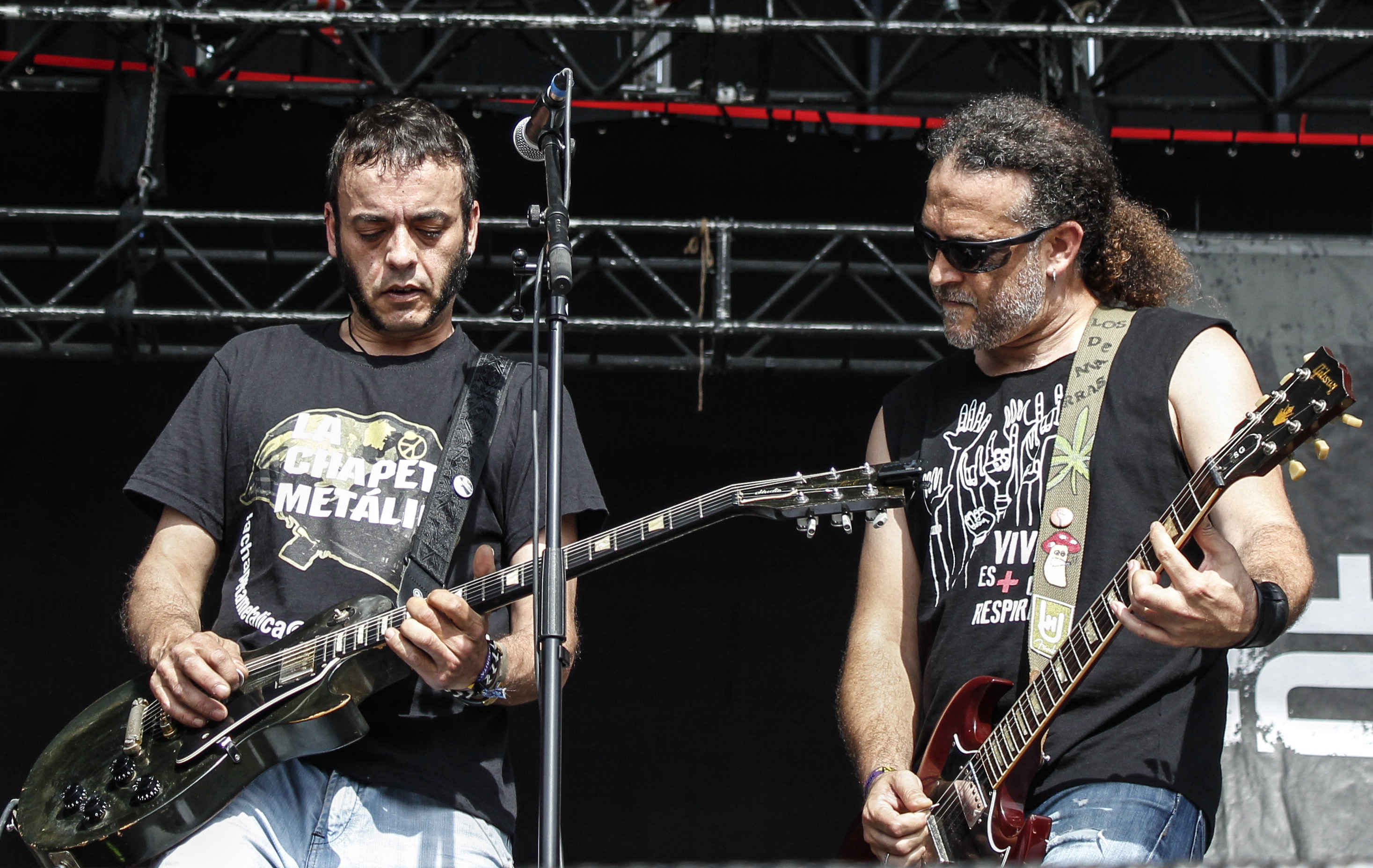RockSesion JSK2Para la siguiente división horaria tenía pensado ver a Juantxo Skalari frente a Habeas Corpus. Al final, entre unas cosas y otras, me repartí entre los dos, cogiendo buenos momentos de ambos conciertos. El amigo Juantxo parece vivir desde hace tres o cuatro años una segunda juventud, pasado el bache (incluso creativo) post Skalariak. Rude Station lo ha reencontrado con su hermano Peio y las canciones de antaño suenan tan festivas como siempre. Ahí quedó demostrado con esa ‘Oligarquía’ y ‘Estoy de Revuelta’ tan bien enlazadas y tan hedonistas como contestarías. Por su parte, Habeas Corpus volvía al Viña después de un concierto en 2014 que fue muy irregular, por llamarlo de alguna manera. Nada que ver. Lo que vi fue a una banda mucho más entera y potente. Decidida a romper cualquier mal recuerdo y yendo a degüello con sus corte más metalera. Como momento álgido ese medley con ‘Mano de Hierro, Guante de Seda’, en el que intercalaron brillantemente temas de La Polla o Barricada, aumenta la virulencia si cabe del círculo generado. ‘Basado En Una Historia Real’ y ‘Sois Ejemplo’ echaron el cierre. Mientras, Juantxo Skalari se despedía a lo grande de nuevo brindando por el repertorio imperecedero de Skalariak, ‘Despídeme’ y ‘Solo Vivir’.
