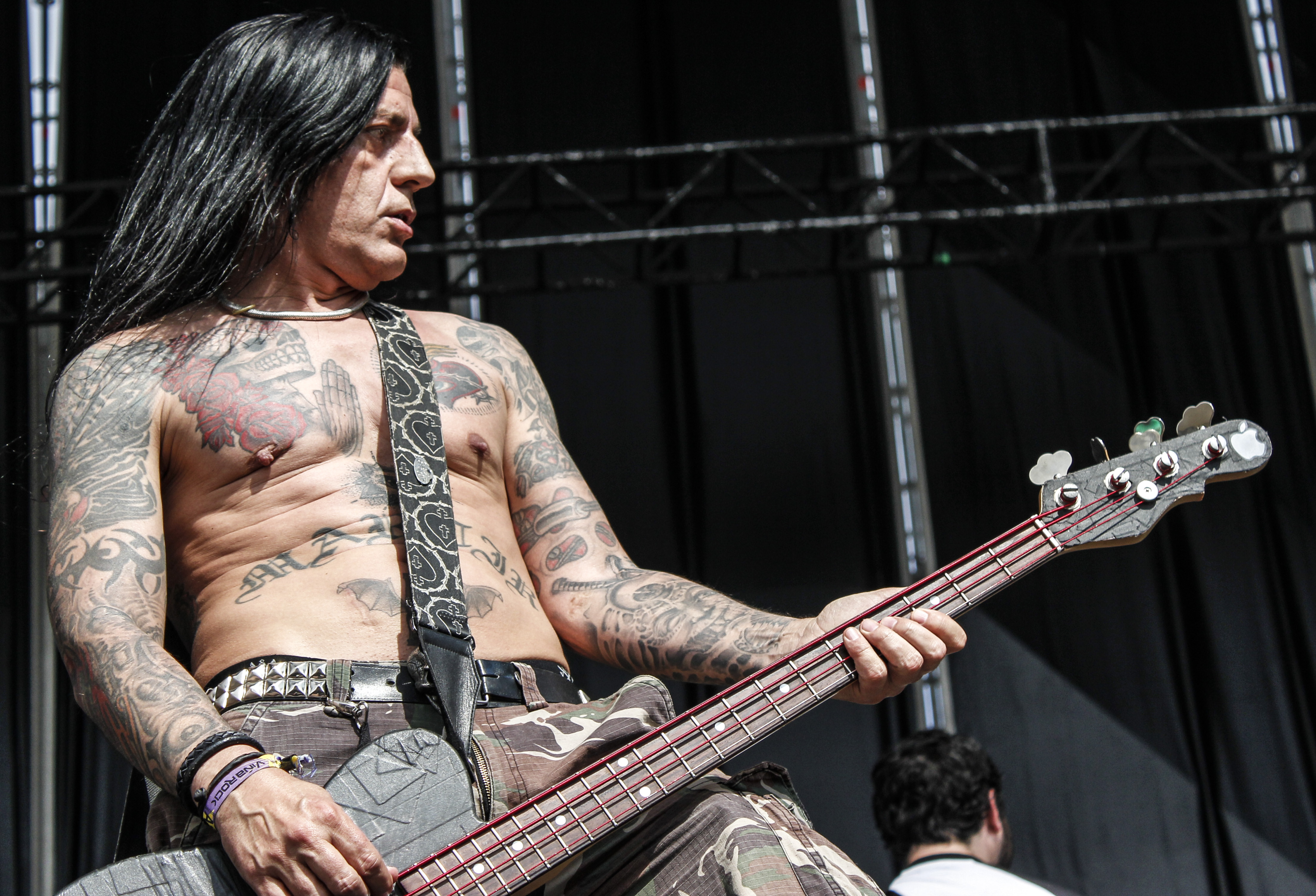 RockSesion Narco2Mi última cita completa era con Narco. Los sevillanos nunca fallan en un gran festival y eso es porque hay mucho trabajo detrás de esa farándula oscurantista y de malotes, por mucho que sean una cosa y la otra. Sonido potente (lleno de graves, como a ellos les gusta) y una puesta en escena mucho más imponente que la de ‘Alita’ con esa cruz gigante en forma de puñal, que cobraba vida en función de las luces. ‘Dios Te Odia’ es un disco grande y había ganas de verlo sobre las tablas. Así empezaron, con ‘Satanízate’ y ‘Asesinato, Alcohol y Ácido’, a la yugular. Esta vez Distorsión y Vikingo estuvieron mucho más centrados (¿más responsables?) que en otras ocasiones y las voces lo notaron, apenas hubo fallo alguno en su difícil alternancia. ‘Siempre Enmarronao’ puso a botar a todos al tercer tema y los pies poco tocaron el suelo con las siguientes ‘Son Ellos’ y ‘Vizco’. “Rocanrol!” para ‘Demolición’, versión de Los Saicos, y sorpresa mayúscula la inclusión de ‘La Hermandad de los Muertos’ tan arriba del repertorio. Tras esa marcha procesional electrificada destacaron ‘Ahí Fuera’, la sucinta ‘La Cucaracha’ y la sobresaliente ‘Tu Dios De Madera’. Aunque la canción sampleada ‘Dame Veneno’ es de Los Chunguitos, fue curioso escucharla a unos minutos de que comenzaran Los Chichos. El tramo final fue el esperado con ‘Kolikotrón’, una soberbia ‘Chispazo’, que levantó al público cual aquelarre, y ‘Puta Policía’ como colofón a un concierto oscuro y poderoso.