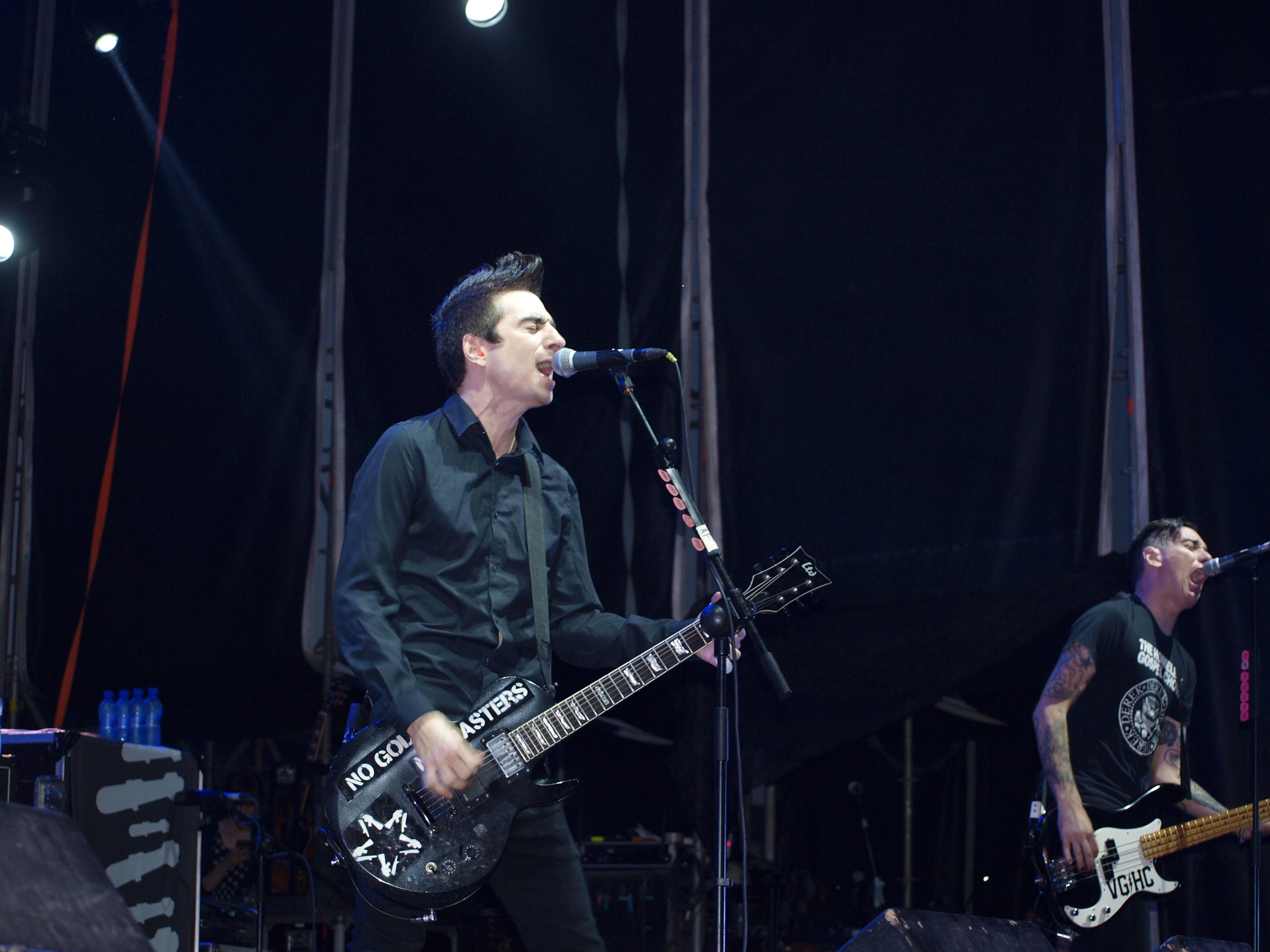 El grupo elegido para actuar en el tránsito hacia el anochecer fueron los norteamericanos Anti-Flag. Una banda confirmada en última instancia (junto a Eskorzo) tras la espantada conocida de los mejicanos Molotov y que no ha estado exenta de cierta polémica levantada en algunos ámbitos en torno a la exclusividad o no y la cancelación del concierto que iban a ofrecer en la sala Marearock de Alicante. Fruto de eso o no, el caso es que la adrenalina de su veloz punk-rock se tornó en épico cuando una baqueta o un palo le abrió la ceja a su vocalista Chris Barker. En lo musical, la banda confirmó las expectativas de los que los adoraban y conquistó a los que no. ‘Turncoat’, ‘Fabled World’, ‘Fuck Police Brutality’ iniciaron la senda de un sonido bien empastado a los pocos minutos. Momentos de catarsis colectiva en las más aclamadas, ‘Broken Bones’, ‘1 Trillion Dollars’, ‘This Is The End’ y, por supuesto, ‘Brandenburg Gate’ y ‘Die For The Goverment’. Sabéis que no soy muy partidario de grupos guiris en festivales de naturaleza nacional pero esta vez puede ser la excepción que confirma la regla.