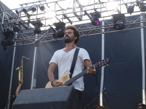 Cambio radical de estilo y estampida de retirada mezclada con estampida de venida para ver a El Puchero Del Hortelano. La formación granadina continúa con esa mezcla de satisfacción y tristeza que da una gira de despedida tan exitosa como la que se encuentran embarcados desde hace varios meses. No hay gran festival multiestilístico que no cuente con ellos y el The Juerga’s, donde ya tocaron el pasado año, no podía ser menos. La banda de Antonio Arco es muy grande, en sus vientos, con Patricia a la guitarra, en cada detalle… Canciones como ‘Las Pelusas’, ‘La Guía’ o ‘Lo Que Pasa Es Que Me Cuelgo’ son pequeñas joyas que saben igual de bien en una cena con un buen vino que en un festival a 40 grados en pleno sol. Fiesta de metales en ‘Paisajes’, bello recuerdo a Krahe en la presentación de ‘De Ovejas y Corderos’, para pasar al amor de ‘El Parque’ y esa confesión de perdición que son ‘Ave Fénix’ y la excelente ‘Hay Días’. El tramo final quedaba reservado para otras joyas románticas como ‘Sábado’, ‘Tú Eres Eso’, ‘Ese Rato Tan Divino’ o la versión de ‘La Quiero A Morir’ y por supuesto las animadas ‘Míralo’ o ‘Asuntos Serios’. Excepcionales. Se les va a echar mucho de menos.