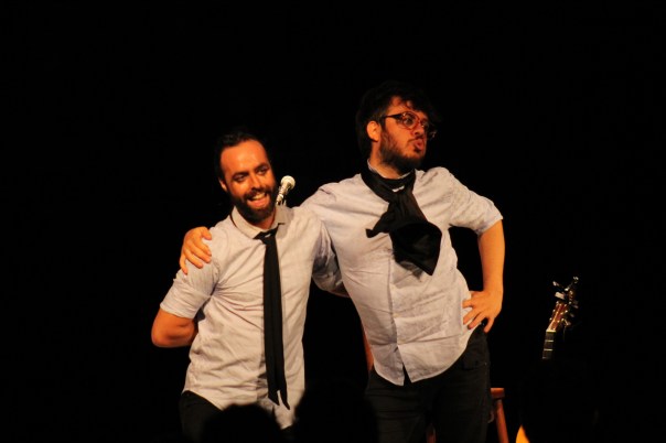 La primera parte del concierto fue clavada. La intro ‘Gregoriana’ que dio paso al torbellino veloz de ‘Cantautores Suicidas’, el reggae de ‘Musa En Paro Busca Poeta’, salpimentado de receta de papas guisás, la belleza disimulada de ‘Mentira’ o el trasnoche flamenco de ‘Le Habla El Sunshine’ y sus dinosaurios y zombies. Todo tan rodado como efectivo. El camino siguió siendo calcado con la persistencia de ‘Traje, Metralla, Medida y Viaje’, rumba cañón que viene a paliar la ausencia de ‘La Necrológica De Un Amorío’ o ‘A Mí Se Me Conquista’, que esta vez no cerró. La canción es tan rotunda que esperemos que sea incluida en el venidero álbum. ‘Hijos de España’, con su mezcla particular entre copla y tango, y ‘Peligro de Extinción’, mucho más divertida que la primera vez que se la escuché y tan deudora de la melódica figura del ‘patito feo’ de La Mandrágora, Alberto Pérez, completaron un primer tramo calcado.