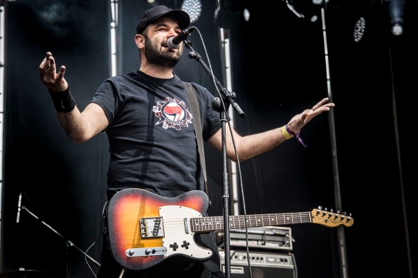 “Donde hay un gallego, hay lluvia”, me comentaban en twitter al hilo del concierto de Dakidarría. Tiene la numerosa y combativa formación de Val Miñor una relación extraña con el festival, pues no ha habido edición en la que no hayan tenido contratiempo. En cualquier caso, no llegó la sangre al río y por el escenario desplegaron su consabida energía festiva, pero con un empaque que les hace estar por encima del corte estándar del grupo simpático con vientos. ‘Lume’, ‘Mil Berros’, ‘A Mocidade Activa’, ‘Despertar’, ‘En Compostela’ o ‘El Futuro Nunca Existió’ para la que contaron con la colaboración de Julio Maloa, de La Raíz (que después saldría con camiseta de Dakidarría a su actuación) marcaron la primera mitad de un concierto que dio su gran acelerón final con ese popurrí ‘salvaje’ con guiños a ‘Mierda de Ciudad’, ‘Sarri Sarri’, ‘MDMA’ y ‘MonkeyMan’. En lo que vendrían a ser los bises, la banda se marcaría ‘Linguas Ceives’, la más reciente ‘Eterno Festival’ y, cómo no, ese himno marca de la casa llamado ‘Terra’.