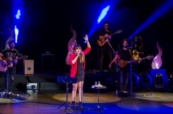 Entre tanta intensidad, quedaba hueco para el ferviente amor de ‘Berlín’ y ‘Para Los Dos’ y la importancia de quererse a uno mismo para querer a los demás; o las divertidas ‘Las Hadas Existen’, en la que sigue manteniendo la bella tradición de subir a las niñas, en los últimos tiempos también algún niño, al escenario para cantar y bailar como saben o les deja la timidez, y ‘Antes De Verte’, con otra confesión sobre sus particulares encuentros con el artista argentino Kevin Johansen, que es quien canta en su versión de estudio. Una misión que fue compartida por parte de una banda integrada por Álvaro Gandul en la dirección musical, teclados y acordeón; Tete Moragón en la batería; Goyo García al bajo; Samuel Vidal en la guitarra acústica; Oliver Martín en la guitarra eléctrica; e Ismael Guijarro, guitarra española, ukelele y percusión. Las delicadas versiones de Aute y Violeta Parra en ‘La Belleza’ y ‘Volver a los Diecisiete’, culminaron la primera parte del concierto, que se puso más festivo en la segunda.