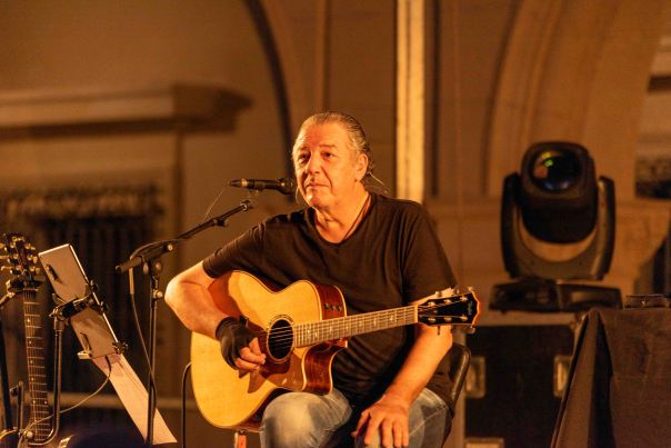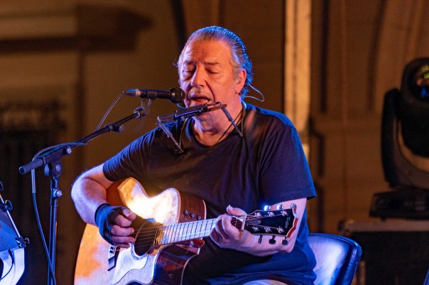 Pocas veces abro la ventana a otras firmas en RockSesión. Por motivos personales de fuerza mayor, este fin de semana no he podido cubrir los conciertos de Mikel Erentxun y Revólver en la Plaza de la Constitución de mi ciudad y será el periodista y director de Consultora Contraportada, Antonio Verdegay, quien os ofrezca las crónicas de ambos conciertos. Allá va la segunda. Salud. La nueva normalidad, o “anormalidad”, como la califica Carlos Goñi, es afrontada por cada artista de forma diferente encima del escenario. Y si el viernes, Mikel Erentxun se dedicó a cantar y tocar, sin casi mediar palabra, Revólver, alter ego de Carlos Goñi, convirtió anoche, sábado, su acústico en la Plaza Vieja de Almería en un café entre amigos, a los que iba contando la génesis de cada una de las canciones que luego interpretaba. Quizás porque fue el precursor de los ‘’unplugged’ en España con aquel exitoso ‘Básico’ de 1993 (más de 250.000 copias y una gira de más de cien conciertos, que ha continuado con otros tres discos acústicos más), el madrileño, afincado en Valencia, no ha tenido tapujos para desnudarse delante de sus incondicionales, en la actuación programada para el verano del Área de Cultura del Ayuntamiento de Almería, y confesar las buenas o malas intenciones que se esconden detrás de los 16 temas que compartió a lo largo de más de dos horas. (FOTOS: José Antonio Holgado – Ayuntamiento de Almería)