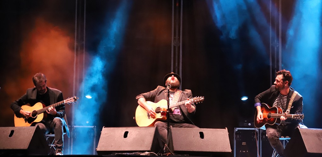 Exacto. Pues sí. Ha sido… Empezó como… (Duda en como entrar a la respuesta hasta que decide no edulcorar nada). Mira, tío, las cosas son como son. Después de la gira de Marea yo podría estarme cuatro o cinco años, como siempre, económicamente tranquilo, en mi casa, a que se pasara el vendaval, ¿sabes? Pero no puedo ver yo a mi entorno comiendo piedras. Pues mira, no puedo darle de comer a todo el entorno de Marea, evidentemente, pero mira seis o siete, montarnos el circo este, hacer un espectáculo bonito con las acústicas… Y montamos como, no me acuerdo cuántos fueron, ¿cuántos montamos del tirón, Pachi? ¿Cuántos íbamos a hacer al principio? Cinco, seis, ocho, no me acuerdo.
