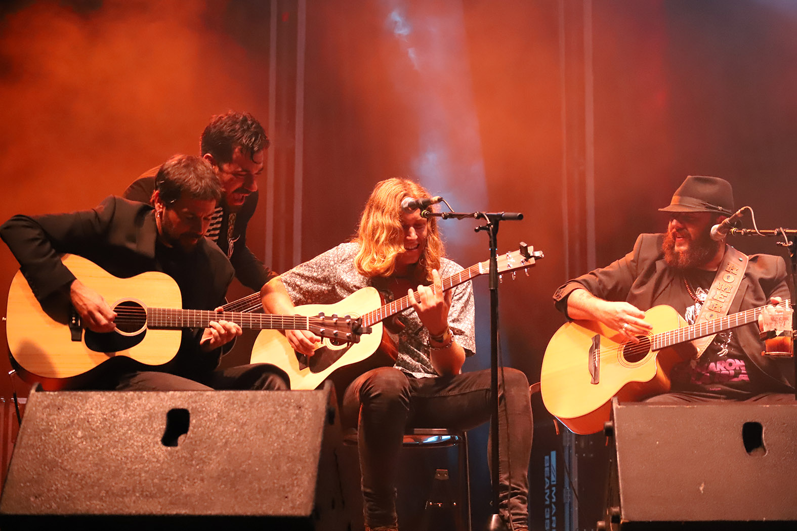Exacto. Pues sí. Ha sido… Empezó como… (Duda en como entrar a la respuesta hasta que decide no edulcorar nada). Mira, tío, las cosas son como son. Después de la gira de Marea yo podría estarme cuatro o cinco años, como siempre, económicamente tranquilo, en mi casa, a que se pasara el vendaval, ¿sabes? Pero no puedo ver yo a mi entorno comiendo piedras. Pues mira, no puedo darle de comer a todo el entorno de Marea, evidentemente, pero mira seis o siete, montarnos el circo este, hacer un espectáculo bonito con las acústicas… Y montamos como, no me acuerdo cuántos fueron, ¿cuántos montamos del tirón, Pachi? ¿Cuántos íbamos a hacer al principio? Cinco, seis, ocho, no me acuerdo.