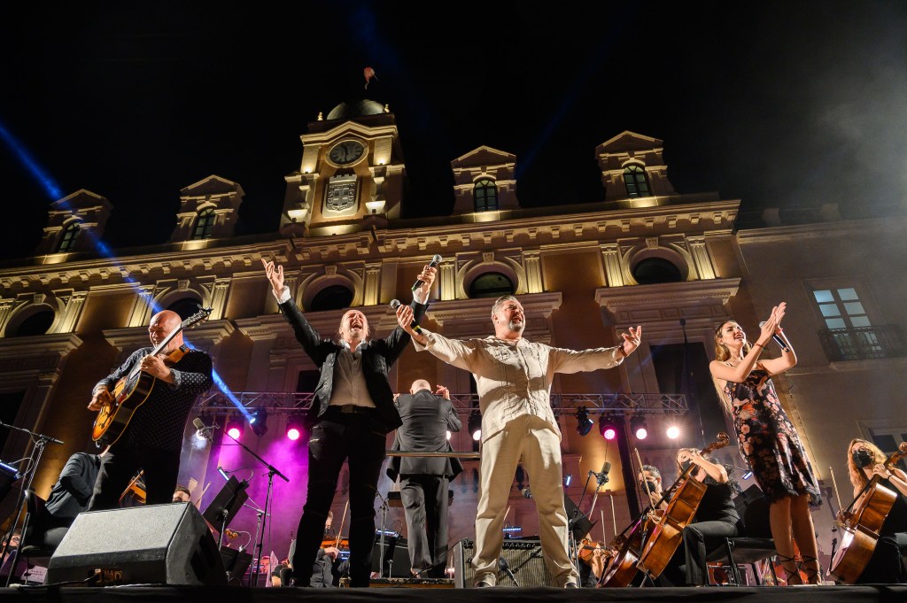La relación de The Beatles y Almería, forjada desde la base de la estancia de Lennon en la ciudad y provincia durante el rodaje de ‘Cómo Gané La Guerra’ y la composición de la canción ‘Strawberry Fields Forever’, escribió anoche una nueva página para el recuerdo. Pero no un capítulo cualquiera, sino uno brillante. Luminoso y bello. Todos los elementos dispuestos para la cita así lo hacían presagiar. Una Orquesta Ciudad de Almería que demuestra no tener techo en cada una de sus actuaciones; un director apasionado del rock como Michael Thomas; un elenco de invitados de altura, con Thomas Vikström, Diego Cruz y María Gil en las voces y Paco Rivas como maestro de la guitarra; una banda, The Beatles Connection (con Antonio Álvarez a la guitarra y voz, Chipo a la guitarra, Pepe Blanes al bajo y Antonio Fernández a la batería), que inició la tradición de los conciertos hace más de veinte años; un telón de fondo fantástico, como la fachada del Ayuntamiento de Almería; el carácter solidario del evento, a beneficio de la ONG Ayudemos A Un@ Niñ@, y todo ello organizado dentro de la programación especial de estos días de Feria adaptada a la situación sanitaria del Área de Cultura y Educación.