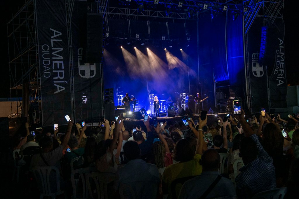 Llegamos a meta. La labor de cronista municipal llegaba ayer a puerto después de una verano intenso de principio a fin (realmente, desde que La Pegatina abrió la contienda de Cooltural Go! a finales de mes de mayo) donde he vuelto a cubrir una treintena de conciertos. Una veintena de Cooltural, Festival de Flamenco e, intensificados, ocho de nueve noches con motivo de lo que se ha venido a denominar ‘no-feria’ en la ciudad. Tras Kutxi, doble Cooltural con Dorian y Viva Suecia, espectáculo infantil, Camela, Happy Moy Fest y el tributo sinfónico a The Beatles, ayer era el momento (ahora, como diría Robe, que es la siguiente doble parada en Granada y Madrid) de cerrar por todo lo alto: con la artista galesa Bonnie Tyler. Una de esas leyendas que uno escucha desde niño (creo que ‘Holding Out for a Hero’ es una de esas canciones que me flipaban tanto que ahí fui descubriendo que la música para mí iba a ser algo más que un pasatiempo) y que jamás se imagina ver a apenas dos metros de distancia. A sus setenta recién cumplidos Bonnie Tyler no va sobrada como hace treinta años, pero su inconfundible voz sigue teniendo un poder hipnótico que no importa que quizá se pasaran demasiado con los teclados rítmicos, demasiado envolventes. Fue un concierto grande, épico. A partir de este momento, os dejo con la crónica realizada como redactor del Área de Cultura del Ayuntamiento de Almería, a través de Pisadas En La Luna. Salud. (FOTOS: José Antonio Holgado).