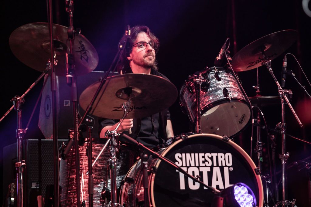 No faltó el saludo a otra ciudad de Miguel, ni sus ‘esas palmas coño’, ni la siempre efectiva entrada de ‘Assumpta’, ni las disertaciones afiladas de Julián (especialmente curiosas las anteriores a ‘España Se Droga’ y la de ‘Ye-Ye’, tras presentar a todo el equipo), ni los solos metálicos, a veces apurados y otras muy estilosos de Soto (por cierto, Soto y Costas con sendas Gibson SG, como las dos cruzadas que llevo en el tatuaje de mi brazo izquierdo), ni la versatilidad de Beltrán, daba gusto ver a Avendaño cantar las canciones fuera del micro mientras hacía las líneas de bajo… Como digo, es ejemplar la actitud del grupo en todo lo que ha sido este trance final. Por eso comprenderán que los empujones, los litros volando, que si el sonido se deslizó bastante el viernes se convierta en algo menor cuando la épica de Siniestro Total se defendió a unos niveles de felicidad y entrega de lo más sobresaliente.