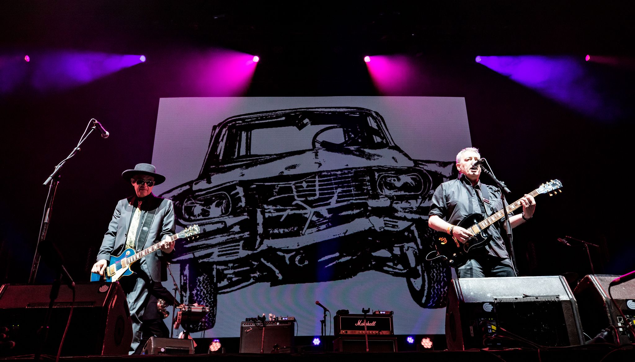 Ahora que han remitido los últimos dolores musculares de darlo todo en el doble concierto de despedida de Siniestro Total en Wizink Center solo nos queda decir… ¡que nos quiten lo bailado! Curiosos tiempos en los que vivimos en los que a un personaje público le hace falta morirse para que sea considerado un genio irrepetible, sea cine, literatura, filosofía, pintura, escultura y, ay, claro que también, la música. La última llamada de Siniestro Total, una banda que había reducido sus conciertos a las llamadas de festivales (por cierto los grandes del pim pam pum y el trompeteo festero ignorándolos casi de manera sistemática durante una década) y fiestas patronales de localidades con tradición de ‘noche rockera’, puesto que ‘el mercado’ de salas tampoco es que dé para demasiado, provocó un delirio colectivo que les llevó a vender más entradas para un concierto en el que solo actuaban ellos de toda su carrera. Por partida doble. En primer lugar con una fecha, la del viernes, 6 de mayo, para la que despacharon unas 14.000 entradas en apenas seis días. Se lo pensaron un poco y al final acabó saliendo una segunda cita versión redux (desde el principio no se podían adquirir las localidades de grada laterales ni superiores centrales) pero con otras casi 9.000 vendidas. El cariño mostrado por el público los meses previos y el vivido en el Wizink ha sido abrumador. Superando con creces a un cierto sector cansino (que todo grupo tiene) que ha intentado buscar una supuesta confrontación, incluso en el ‘velatorio’ de la banda, entre los Julianistas y los Costistas. Ellos, Julián Hernández y Miguel Costas, que dejó la banda en el 94, y el resto de músicos han dado un ejemplo magistral de cómo se debe actuar en situaciones que merecen enterrar divisiones, ofreciendo la despedida perfecta para quienes soñaban volver a verles en escena juntos o, en mi caso, por vez primera. Un aquelarre de dos días en los que todo lo bueno compensa con creces los peros. (FOTOS de Rubén G. Herrera para RockSesión).