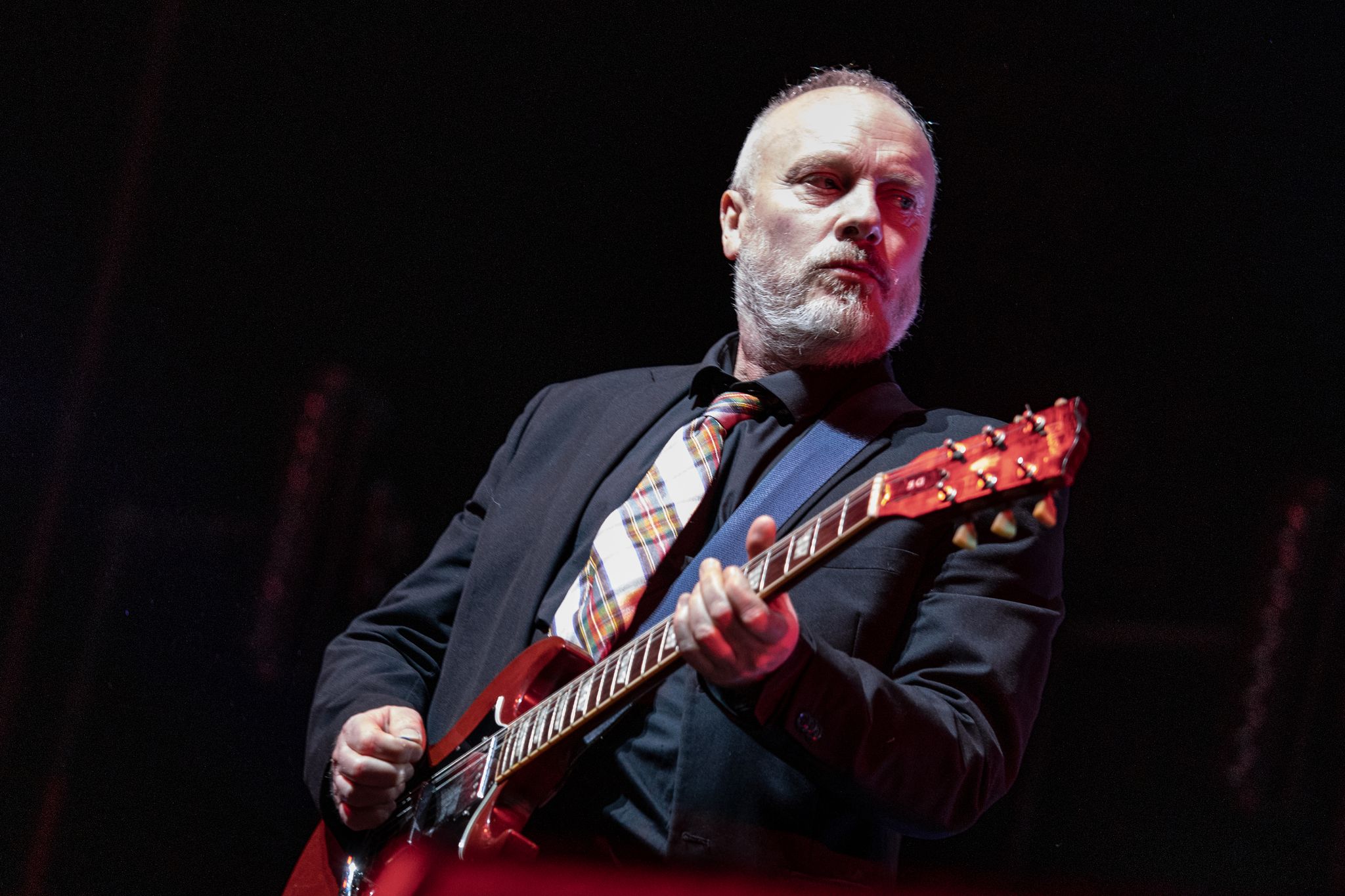No faltó el saludo a otra ciudad de Miguel, ni sus ‘esas palmas coño’, ni la siempre efectiva entrada de ‘Assumpta’, ni las disertaciones afiladas de Julián (especialmente curiosas las anteriores a ‘España Se Droga’ y la de ‘Ye-Ye’, tras presentar a todo el equipo), ni los solos metálicos, a veces apurados y otras muy estilosos de Soto (por cierto, Soto y Costas con sendas Gibson SG, como las dos cruzadas que llevo en el tatuaje de mi brazo izquierdo), ni la versatilidad de Beltrán, daba gusto ver a Avendaño cantar las canciones fuera del micro mientras hacía las líneas de bajo… Como digo, es ejemplar la actitud del grupo en todo lo que ha sido este trance final. Por eso comprenderán que los empujones, los litros volando, que si el sonido se deslizó bastante el viernes se convierta en algo menor cuando la épica de Siniestro Total se defendió a unos niveles de felicidad y entrega de lo más sobresaliente.