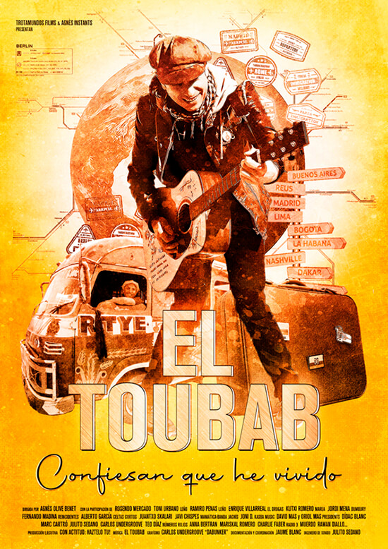 Dice la sinopsis oficial con la ‘los Kikes’ (Babas y Turrón) presentan esta película, que puedes ver íntegra en el canal de Rock Estatal Records, lo siguiente: “Un valioso documento visual en el que vislumbrar la vida, obra, pensamiento y sentimiento de El Toubab a través de diversas voces que lo han tratado y saben bien la noble madera de la que está hecho. Así, a través de la vivencias, recuerdos, reflexiones y confesiones de Rosendo Mercado, El Drogas, Javi Chispes de Maniática, Kutxi Romero, Ramiro de Leño, Fernando Madina de Reincidentes, Andreu Buenafuente, sus compañeros en otros proyectos y hasta casi medio centenar de participantes, conoceremos la biografía de aquel muchacho de Reus que arrancó como bajista y militante del rock urbano en Presidents —época en la que comenzó su relación fundamental con el ya fallecido Toni Urbano de Leño— para abrir mente, corazón y sonido, aún a las cuatro cuerdas, en La Voz de los Nadie —de cuando data su primer e iniciático viaje a Senegal, con la asimilación de la música étnica y el aprendizaje de la fusión mestiza—, para desembocar en la carrera de El Toubab, el nombre artístico (que significa hombre blanco en dialecto senegalés) elegido por Jaume Blanc para continuar su viaje sin retorno al corazón del mundo y de sí mismo, recorriendo, con ese arma cargada de esperanza que puede llegar a ser una guitarra cuando se entiende a lo Woody Guthrie, las calles de Berlín y Montreal, de París y Lima, de Londres y Dakar, de Bogotá y Atlanta, de Buenos Aires y Barcelona… Un documental que nos muestra y demuestra que la locomotora Toubab sigue marcha, latiendo inasequible al desaliento, en pos de la siguiente estación, haciendo camino al andar”.