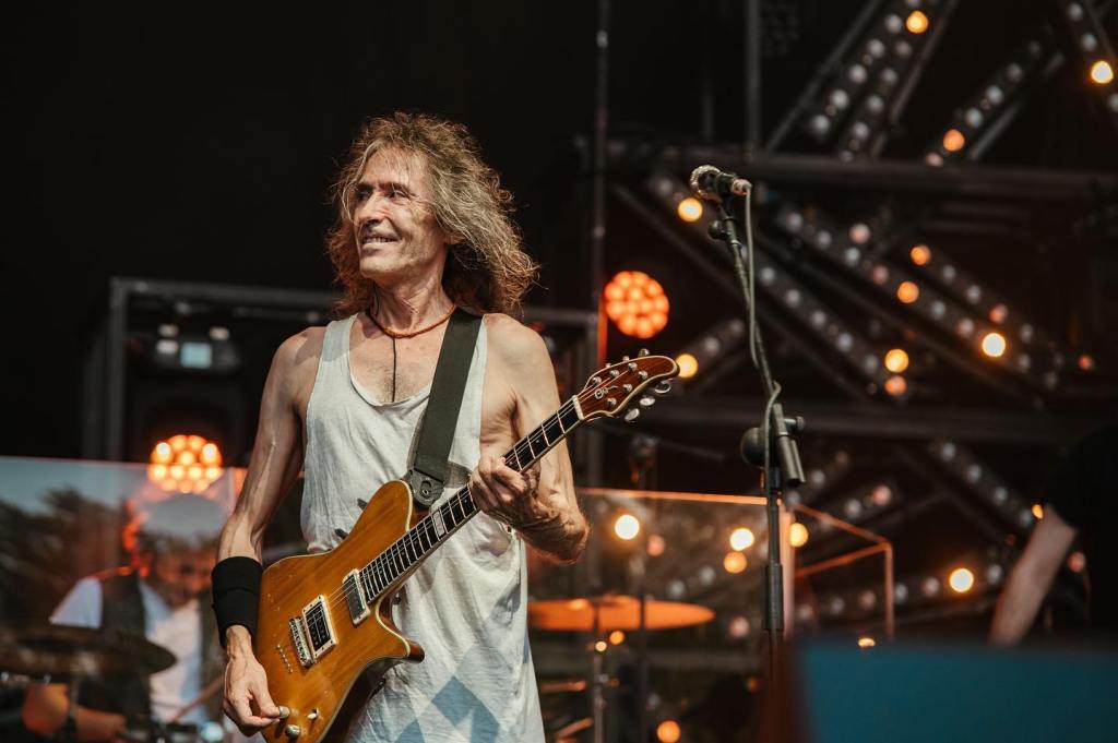 El tono distendido continuaría con la primera referencia al lugar: “rockeros, el que no esté colocado, que se coloque”. Frase popular de Tierno Galván, que da nombre al parque donde se ubica Madrid Escena. Desde luego que fue una presentación idónea para ‘Tu Corazón’, un tema que pensaba que jamás iba a escuchar en directo porque la tenía ubicada como uno de esos que a Robe no le apetecía volver a cantar… Lo que vuelve a hablar de su acto de generosidad con parte de su público. Sonó muy empacada en su base rítmica, lo que le quitaba algo de ese aura salvaje iniciático y merece mención especial el papel de Carlitos añadiendo otra textura a las melodías tan reconocibles. Eso sí, como ocurría con el fragmento de Pedrá en la gira de las perchas, la renovación del público en estos años ha sido tal que una gran parte parecía no conocerla, aunque se escuchó ligeramente ese desdoblamiento que hacía Fito en la gira de la que salió Iros Todos A Tomar Por Culo.