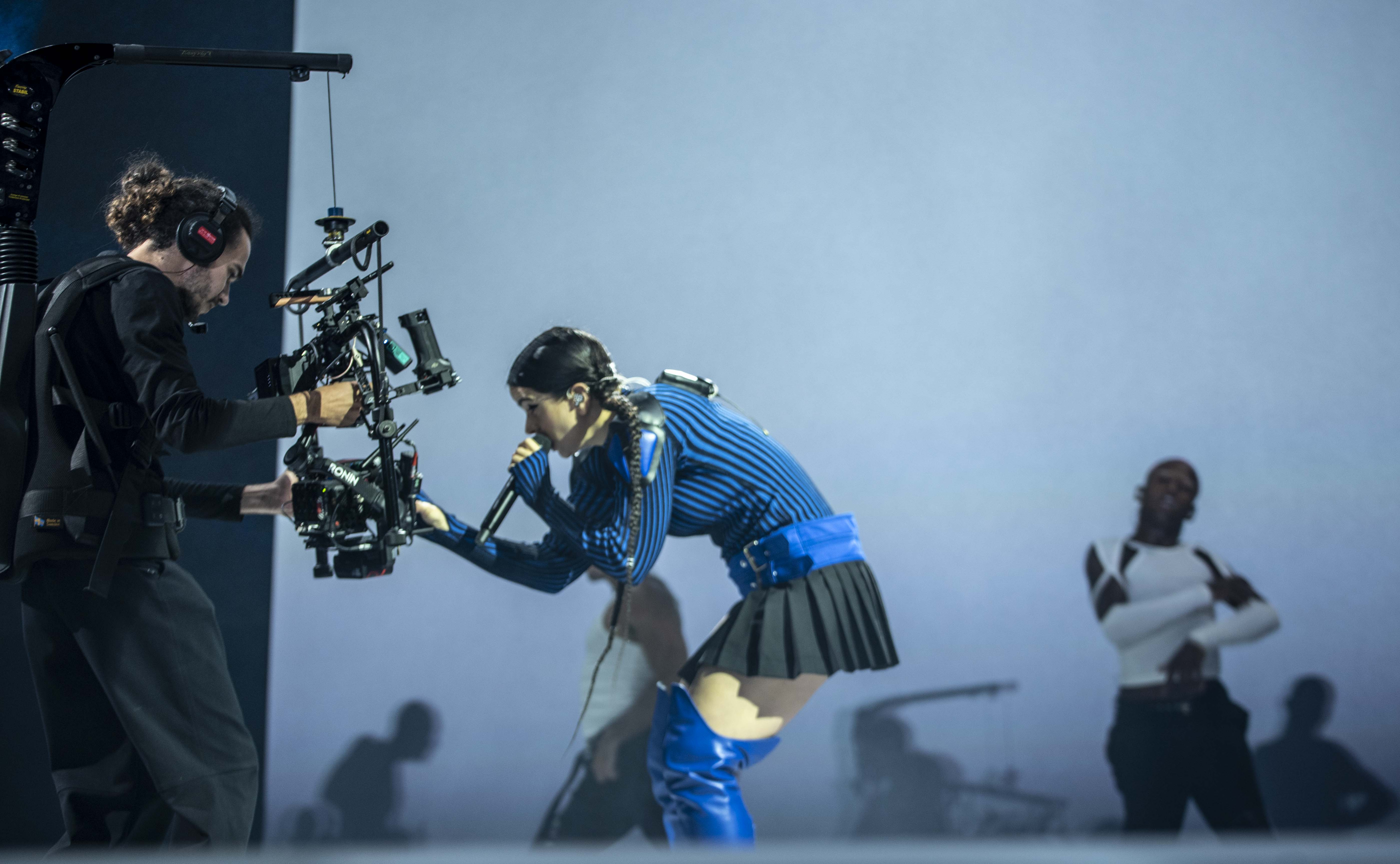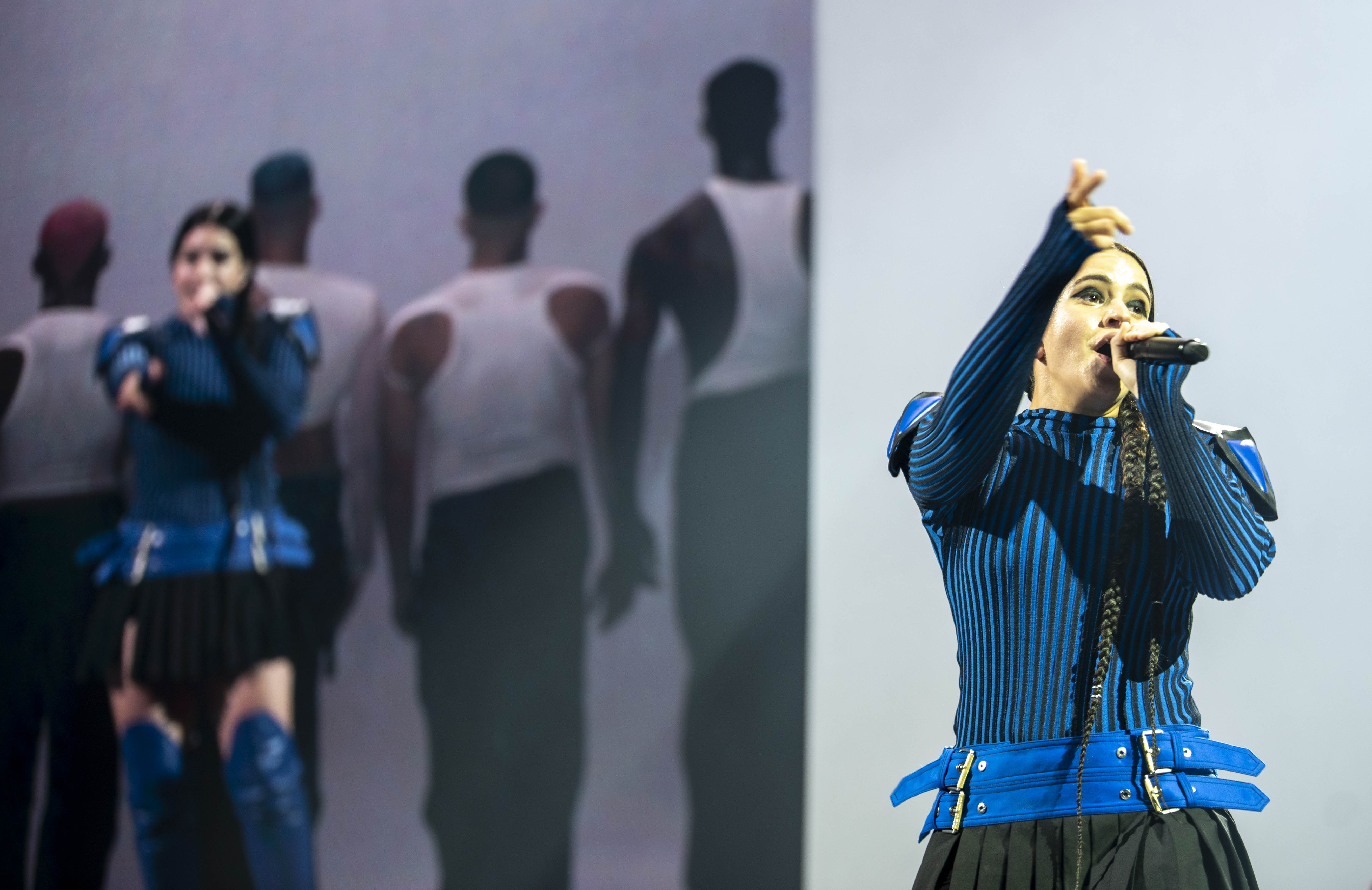 Estos cuatro temas son suficientes para entender el porqué del escenario porque junto a Rosalía y los bailarines (con un premeditado equilibrio que recuerda a los viejos anuncios de Benetton) veremos la figura de un operador de cámara móvil, que retransmite desde el escenario la actuación como si de un videoclip en directo se tratara. Un trabajo de coordinación excepcional que dice también mucho de los nuevos tiempos de la música como espectáculo. Pero, lo más curioso, es que pese a lo que pudiera parecer un maquinal concierto pautado, Rosalía consigue que todo fluya con una naturalidad pasmosa. Que sus improvisaciones y conversaciones con el público prescindan de grandilocuencias, que la sonrisa que brota sea sincera, que el equilibrio entre lo medido y lo improvisado sea arrollador. Y les guste o no a los haters, eso se consigue desde un trabajo de muchas horas al día, desde un compromiso inquebrantable sobre el que se construye, sí, una inversión, pero no por ello regalada.