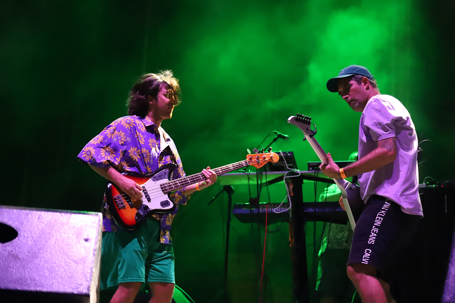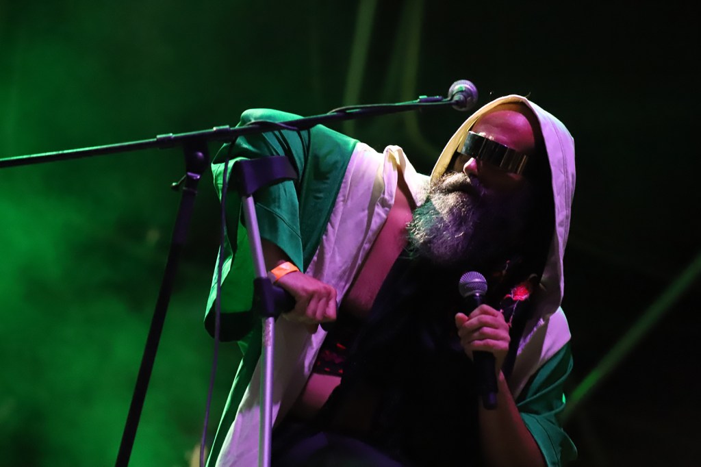 Con el ambiente ‘calentito’, se acercaba el turno de uno de los grupos más esperados de la noche, si tenemos en cuenta que ‘su boom’ llegó casi con la pandemia y que todavía son muchos los festivales que tienen que desprecintar el tarro de las esencias de Califato ¾. Su mezcla de flamencos y arabescos con música electrónica tienen pólvora festivalera y así lo demostraron en un concierto que fue de menos a más ya que tras la intro hiper percutida de ‘Indiô der çûh’ llegaría una ‘Çambra der Huebê Çanto’ algo deslucida. Pese a todo, como las grandes remontadas, el concierto comenzó a despegar con la entrada de Roxana Pappalardo y la mejora del sonido, un mucho mejor y más centrado Manuel Chaparro, imprescindible en sus narraciones y arengas, el ejemplo de versatilidad extrema de Curro Morales, y la base combustible de Sergio Ruiz, Esteban Espada, Lorenzo Soria y Guillermo Iniesta. A tempo cabal, ‘Buleríâ del Aire Acondiçionao’ y la jota jiennense ‘En bûcca y câttura’ centraron el asunto para ese surrealista momento que sigue ofreciendo las magníficas sevillanas ‘Pascual Márquez, 33’. Tras la ligera ‘Canalita En Rama’, sonó furiosa ‘La Puerta’, versión remezclada del tema de Le Parody, con guiño a Triana incluido, tan vibrante como el de Enrique Morente en ‘La Bía En Roça’. Tras ‘Alegríâ De La Alamea’, llegaría la gran sorpresa de la noche con una gran versión de ‘Historia De Un Amor’, el tema que Califato versión con La Cebolla, Negro Jari y Tomasito en el documental reciente sobre Lola Flores. Para los bises, ‘Crîtto de lâ Nabahâ’ y la versión psicotrópica del ‘Înno de Andaluçía’, aquelarre final.