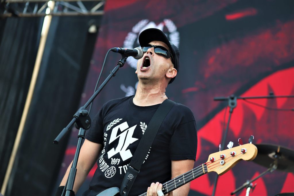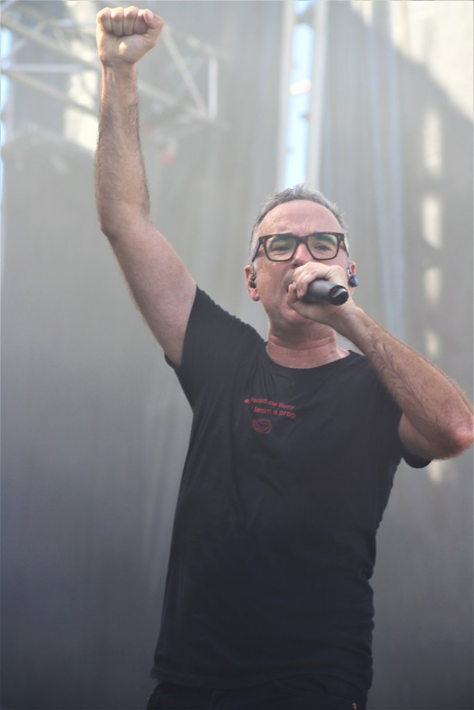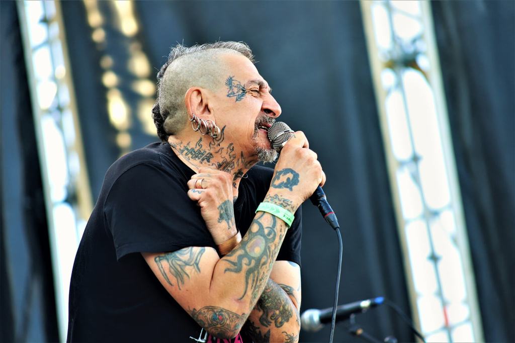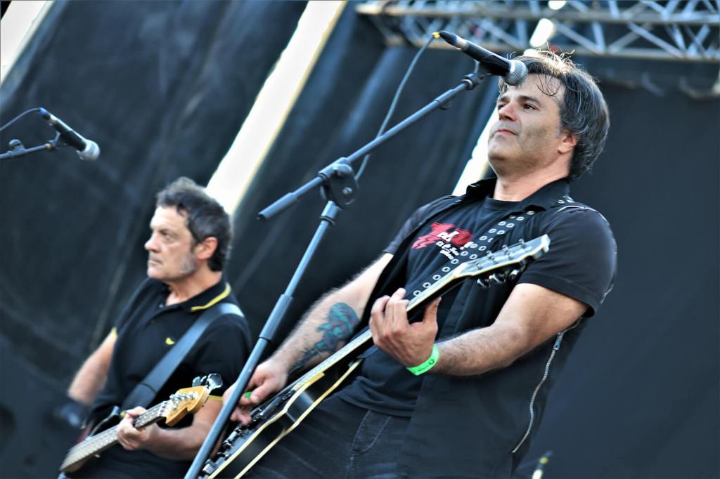 Otro vocalista que no se arruga, aunque eso lo sabemos desde hace mucho tiempo, es Evaristo. Que tras el divorcio abrupto con Gatillazo, a sus sesenta velas, decida empezar de cero con una banda llamada Tropa Do Carallo, cuando podría crear una banda de auto-tributo e hincharse a más conciertos repasando el repertorio de La Polla Records, es un ejemplo de la pasta y madera de la que está hecho el protagonista. Escoltado por Abel (un placer haberle saludado, como a toda la familia de la banda que tanto me cariño me demuestra siempre) recuperado a la causa musical tras la gira de reunión de LPR, y con Tripi, habitual desde hace más de dos décadas en todos sus grupos, y con la savia nueva de Alberto Salgado y Kako a las guitarras, Evaristo repasó casi la totalidad de su debut en Qué Hostias Andáis! y algunas pinceladas de La Polla, The Kagas y The Meas. Efectivamente, de Gatillazo no. En aras de facilitar las cosas, eso sí, el disco se presenta casi en la misma disposición y orden, intercalando las retrospectivas entre ellos. Por eso no es extraño que de una tacada sonaran ‘Vente A La Mierda’, ‘…O Esclavos’, ‘Un Cigarrito Para Humphrey Bogart’ y ‘Sálvame Patata’, con ‘Delincuencia’ y ‘Maigenerasión’ como bombas incendiarias. Y es que no hace falta mucho más que ver a Evaristo por el escenario, tan jovial y dicharachero como siempre, con unas hechuras musicales menos aceleradas y más rolleras, quizá más propias de una nueva etapa en ciernes y, por qué no decirlo, recuperando también algo de la esencia primigenia de los primeros años de carrera. Al final, como es habitual también, por bloques de seis, Tropa De Carallo puso pica en nuevo festival y pinta a largo recorrido. Entre los regalos mencionados (que intuyo que se irán reduciendo conforme lleguen nuevos discos) hay que destacar que el ‘Underdog’ de The Kagas, ‘Perros de Prensa’ de The Meas, el mantenimiento de ‘Odio A Los Partidos’ y ese ‘El Avestruz’ que levantó pasiones antes de la despedida con ‘Hoy Vamos A Explicar La Palabra Feo’ y ‘Obediencia’.