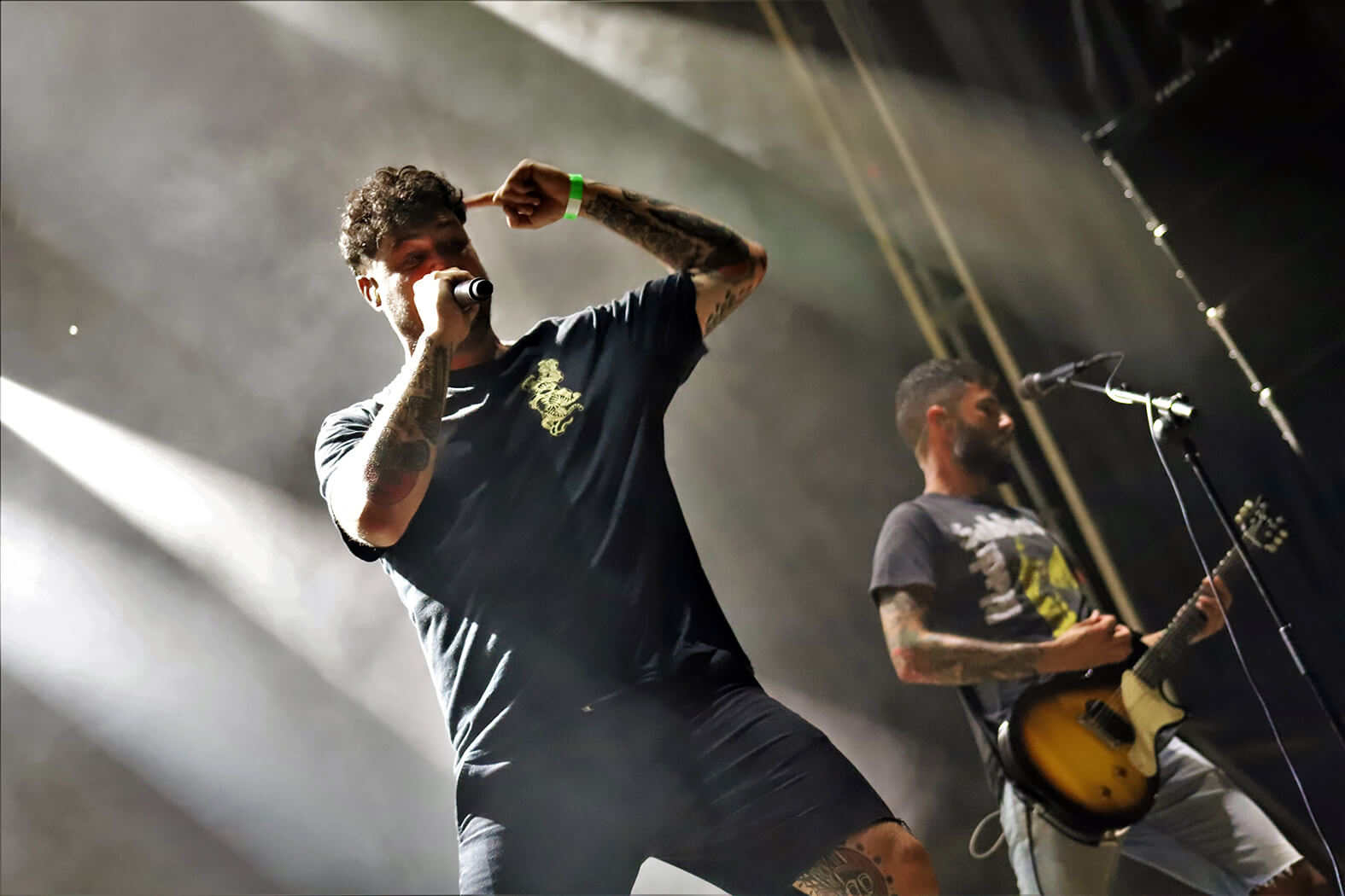 No cambiamos mucho ni en geografía ni en estilo, puesto que Segismundo Toxicómano eran los encargados de recoger el testigo. Con el cuarteto inconfundible que les ha hecho más grandes, esto es Placi, Gabi, Peke y Arnaiz, ‘los Segis’ salieron a arrasar como suelen, con ese punto hardcoreta melódico y de punk de alta graduación con coros y guitarras pegadizas. Tuvieron mala suerte con Sangre Fácil, su último disco, que salió apenas tres o cuatro meses antes de la explosión pandémica y le impidió un desarrollo natural a las canciones que deberán pelear hacerse un sitio ahora, casi tres años después. ‘Muérete’ abría la contienda y también sonarían ‘Antihéroes’ o ‘Gloria’, pero es en los himnos donde la respuesta se multiplica. ‘Pordioseros’, ‘Una Bala’ y ‘Hoy Como Ayer’ fueron los primeros ‘tótems’ en hacer acto de presencia con otras de la trilogía como ‘En Este Infierno’ o ‘En Un Minuto’. (De aquellas eché en falta ‘Electroshock’, ¿o sí sonó?). En la escala final, que tuvieron que recortar en un par de temas, se celebraron con la profusión de alegría y cánticos habituales temas como ‘Mi Vida’ y ‘Por Ti’, mientras que echaban más furia con las combativas ‘Último Asalto’ o ‘Sospechosos’. Para terminar, recordaron que ‘Las Noches Siguen Sabiendo A Sangre’, hicieron bailar al respetable al ritmo de ‘Las Drogas’ y hasta recuperaron la versión de ‘Botes De Humo’ de Cicatriz, para terminar con el outro con la canción de ‘La Vida De Brian’ de los Monty Python.