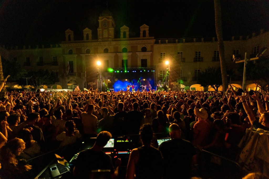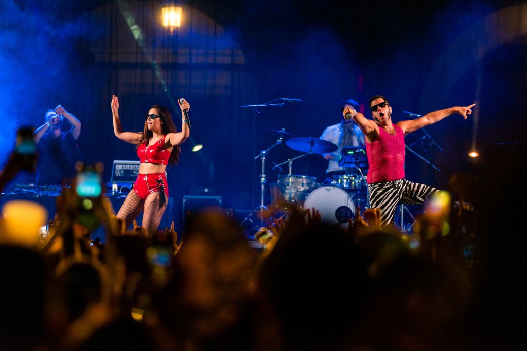 Bien entrada ya la noche y con la Plaza de la Constitución a rebosar, comenzaría la rave-cañí de Ladilla Rusa, el dúo que conforman Tania Lozano y Víctor F. Clares, que han convertido ‘su broma’ personal inicial en un grupo que revienta festivales y salas con un sonido que, ante todo, busca ser lo más alejado de lo presuntuoso para convertirse en una alocada fiesta de sonidos ‘poligoneros’ y letras de humor más o menos corrosivo. Bien de provocación precisamente fue su inicio, con ‘¡Qué Ladilla!’. Un arranque feroz que tuvo una espectacular continuación con tres de sus cuatro temas más escuchados en las plataformas de streaming como son ‘Todos Los Días Lo Mismo’, ‘Bebo (De Bar En Peor)’ y ‘Macaulay Culkin’. Pese a lo alocado de su música, hay que destacar el salto dado en esta gira por el dúo, ya que, además de dj, se acompañan de batería y guitarra, lo que representa un plus tanto para la puesta en escena como para el sonido. El concierto continuaría con la pandémica ‘A Metro y Medio’, ‘Criando Malvas’, donde no faltó un guiño al tema ‘Astronomía’, que se hizo meme con los entierros bailados en Ghana, y ‘La Puta (M)ama’, para todas las madres. La cosa terminó de desmadrarse con el tecno feroz de ‘Encarni Encarnae’ (‘Flying Free’ incluido), ‘Princesas’ y la punki ‘Club de Petanca’. Para punto final, el del eurovisivo ‘After Party’ y la esperadísima ‘KITT y Los Coches Del Pasado’ que dejó el pabellón en todo lo alto.
