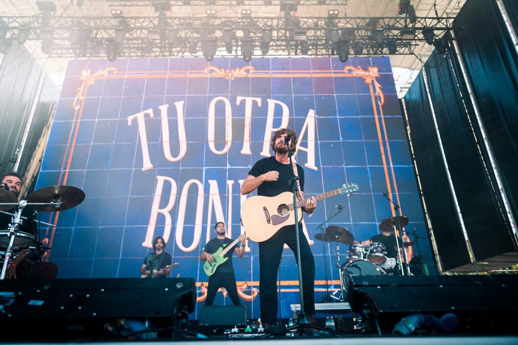 Del estruendo a la calma y a la lírica preciosista de Guitarricadelafuente. El jovencísimo artista de raíces aragonesas, un fenómeno viral desde antes de la pandemia y mucho antes de haber publicado su primer disco por la particularidad de su tesitura vocal y la sensibilidad de sus letras, se plantaba valiente en un festival de corte festivo con una propuesta que precisa de escucha, de aprecio del detalle, de la emoción más concentrada. De hecho, proliferaron las lágrimas de emoción entre el público. Pese a que los grandes espacios no son lo más acorde para ello, lo cierto es que demostró una seguridad notable detrás de una aparente timidez. Abrió con ‘Amanita’, ‘Ya Mi Mamá Me Decía’, ‘Redondico’ y ‘La Filipina’, temas de su disco ‘La Cantera’. Los aires de plazuela andaluza y sus querencia por el folclore latinoamericano dialogan también con toques y gusto ochentero. Por su parte, ‘Caballito’ recuerda también en las músicas al aire ‘clandestino’ de Manu Chao, animando un segundo bloque donde destacaría también ‘Conticinio’, ‘ABC’ o ‘Mil y Una Noches’. Para el final, el deleite de ‘Agua y Mezcal’, para terminar, tras otra serie de temas del último álbum, como ‘A Carta Cabal’ o ‘A Mi Manera’ con la celebradísima ‘Guantanamera’.