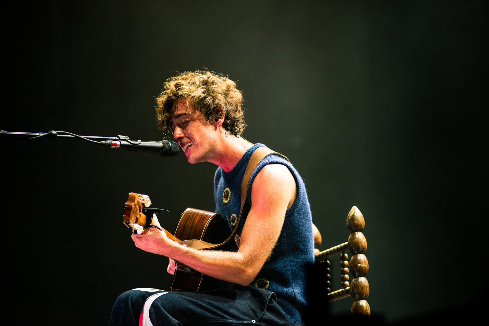 Del estruendo a la calma y a la lírica preciosista de Guitarricadelafuente. El jovencísimo artista de raíces aragonesas, un fenómeno viral desde antes de la pandemia y mucho antes de haber publicado su primer disco por la particularidad de su tesitura vocal y la sensibilidad de sus letras, se plantaba valiente en un festival de corte festivo con una propuesta que precisa de escucha, de aprecio del detalle, de la emoción más concentrada. De hecho, proliferaron las lágrimas de emoción entre el público. Pese a que los grandes espacios no son lo más acorde para ello, lo cierto es que demostró una seguridad notable detrás de una aparente timidez. Abrió con ‘Amanita’, ‘Ya Mi Mamá Me Decía’, ‘Redondico’ y ‘La Filipina’, temas de su disco ‘La Cantera’. Los aires de plazuela andaluza y sus querencia por el folclore latinoamericano dialogan también con toques y gusto ochentero. Por su parte, ‘Caballito’ recuerda también en las músicas al aire ‘clandestino’ de Manu Chao, animando un segundo bloque donde destacaría también ‘Conticinio’, ‘ABC’ o ‘Mil y Una Noches’. Para el final, el deleite de ‘Agua y Mezcal’, para terminar, tras otra serie de temas del último álbum, como ‘A Carta Cabal’ o ‘A Mi Manera’ con la celebradísima ‘Guantanamera’.