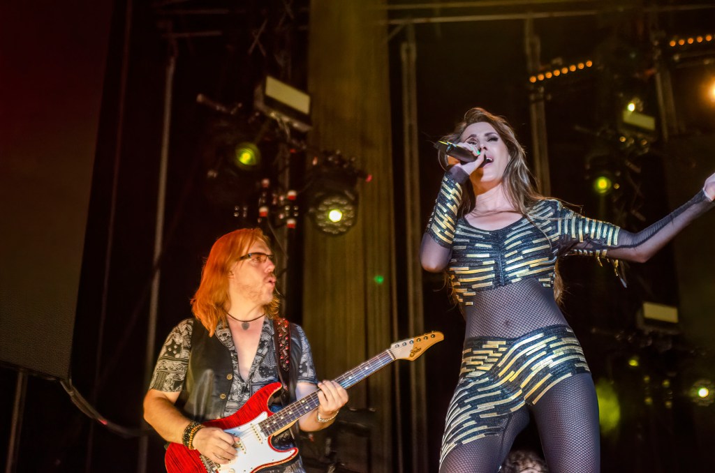 Con el primer cambio de vestuario a ligeros destellos góticos, ‘Mil Batallas’, con un gran crescendo en el preestribillo final, sería el inicio de un bloque que tuvo su momento álgido en la ejecución de uno de esos popurrís retrospectivos que se pueden permitir quien acumula ya casi 25 años de carrera y una docena de discos de estudio. Desde el drama de ‘Duele’ a la melódica ‘Siempre Tú’, con el arrepentimiento de ‘Me Quedó Grande Tu Amor’ y las casi gospelianas en coros ‘Te Conozco Desde Siempre’ y ‘A Esto Le Llamas Amor’. Reconozco que disfruto mucho más estos registros que en la fórmula de estribillos acompañados de coros épicos de brazos al aire (tipo Coldplay, por resumir el concepto) como en ‘Desprevenida’, a la que mejoró la energía de ‘Que Nadie’, saltos verticales incluidos, o los arreglos de rondalla italiana de ‘Ahora Tú’, con una elección de imágenes en las pantallas que parecía simular una concepción.