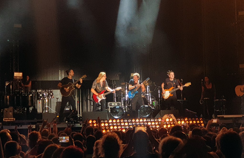 Pero si hay canciones en las que se demostró que una presentación en directo tiene una magia que no te pueden dar los discos es ‘Deshielo’, un tema más rockero, con un punto épico en el estribillo y que finalizó con un buen dúo de solos de guitarra eléctrica en la coda. Nada de una banda de acompañamiento para la estrella, sino que el armazón sonoro propuesto y la calidad de su ejecución justificaba por sí solo la entrada.