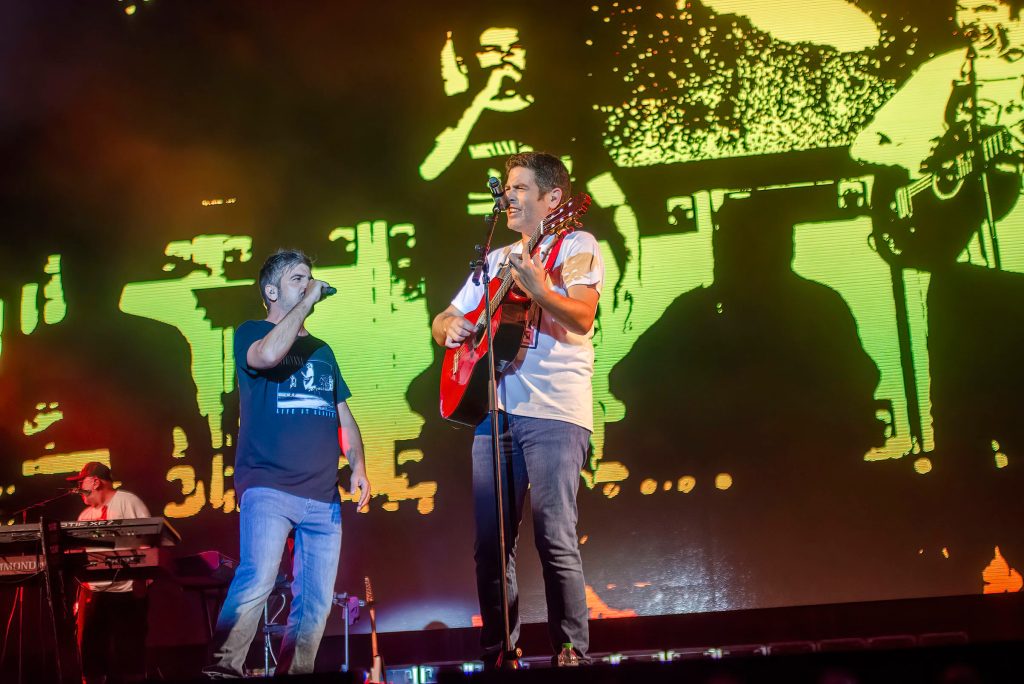 Fue una celebración compartida, desde el tema inicial hasta que se despidieron con ‘Como Camaron’. Fue pronunciar David las palabras mágicas, “Fui a la orilla del río” y de inmediato el público continuó la canción “Y vi que estabas muy sola…”, coros que se repitieron a lo largo de la noche, y es que sus letras se han convertido en himnos por todos conocidos. Durante dos horas y cuarto, Estopa hizo un repaso a su discografía con un catálogo de casi 30 canciones de todas las etapas, y con la incorporación con cuatro temas de su último trabajo, ‘Fuego’ (‘Camiseta de rock&rol`, ‘El último renglón’, ‘Yo no estoy loco’ y la que da título al disco).