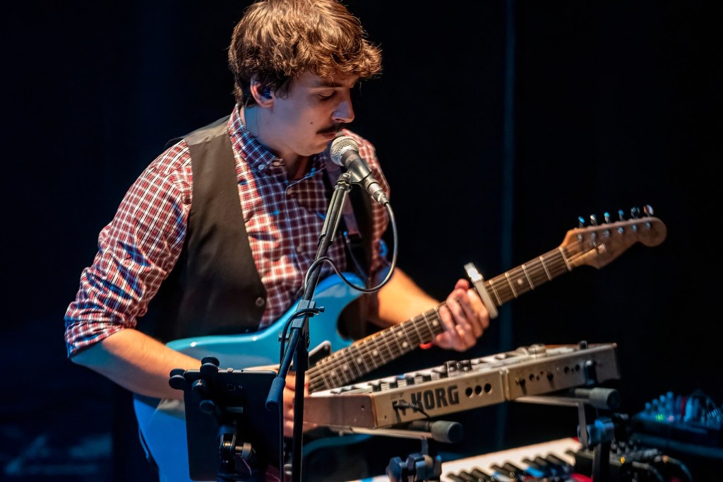 Juguetona con pequeñas síncopas y un estribillo más veloz, el concierto continuó con ‘Lírica’, donde se evidenció otro de los elementos clave del sonido de Lepanto, que es el enorme trabajo de armonización en coros vocales aparentemente sencillos pero muy arriesgados. Roto el hielo con los tres primeros temas, llegaría el momento de la primera de las cuatro versiones que sonaría en la noche, ‘Le Tour 95’ del vallisoletano Ángel Stanich, a la que le sentó bien el ligero endurecimiento. Con aire de medio tiempo de guateque sesentero ‘Escaramuza’ sirvió para cambiar ‘a plato pequeño’, antes de que llegara la primera colaboración de la noche, la de Rofo Lôquemor que, como en la versión en el estudio puso su voz y ánimo a ‘Tu Tiempo’.