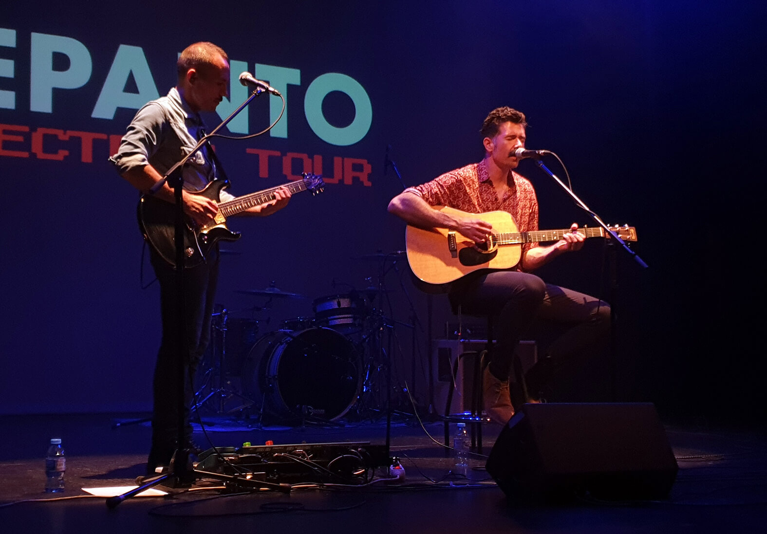 Imitando la presentación de Calamaro en la conocida grabación en directo, Lepanto versionó el ‘Palabras Más, Palabras Menos’, antes de ofrecer el primer gran momento introspectivo con ‘Pretérito Imperfecto’, medio tiempo con sabor a pop noventero y recibir una nueva colaboración, la de Juan Diego Fumangie que, muy activo toda la noche en el proscenio, aportó su voz a ‘El Final’ de explosiva coda. Después de pasar por Cables Cruzados y Casino, Lepanto, además de las versiones, completaría su todavía escaso repertorio publicado con la cabecera con algún tema inédito. Es el caso de ‘La Caverna’, compuesto para los tiempos de Cables Cruzados, recuperada para la causa en un claro homenaje, con algunos arreglos de guitarra de punk británico, a la tienda de discos que hoy se disfruta en la calle Minero, con especial mención a la batería, con un sonido perfecto durante toda la actuación.
