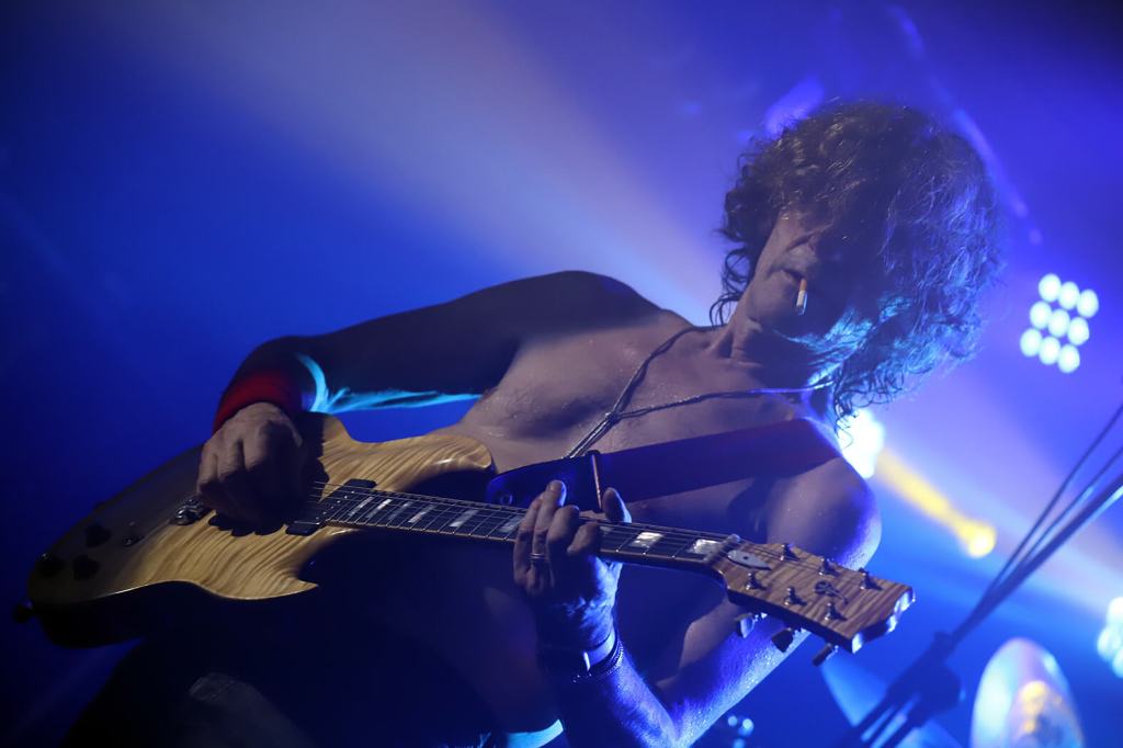 Guiño a Kutxi Romero (ojo a lo que se viene el 23 con Los Potros del Tiempo) y Boni con el tema “Ya Nos Veremos”, profundamente intenso y sentido y con un Iñaki mejorando paso a paso también las lides comunicativas, sacando a pasear otro derroche de blues brillante en “Mírame”, convirtiendo la sala en un karaoke popular con “El Roce De Tu Cuerpo” y mejorando con sonido añejo de tomo y lomo en “Sin Solución”, uno de los mejores momentos de la noche. En esta ocasión fue “Puta” la encargada de cerrar este tramo, con un protagonismo especial de las teclas de Aiert, que es quien con la saturación de su órgano confiere una sonoridad de segunda guitarra para la intro y para muchas de las armonías de los nuevos arreglos. La canción, está claro, nos suena en lo vocal algo más extraña, pero, ay, cuando llegan los riffs y los solos de Iñaki, con un Cantera descomunal, de aires setenteros, y un Colino siempre fiable (después de tocar con Fito & Fitipaldis, Flying Rebollos, Inconscientes y Extremoduro es una gozada verle implicado en la causa), eleva la cuenta a niveles enormemente satisfactorios.