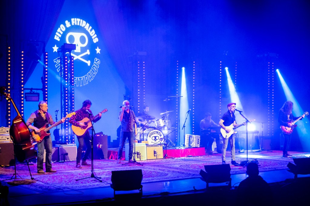 Con el aval de haber agotado entradas para los treinta y tantos conciertos programados, la nueva gira de teatros y auditorios que está llevando este otoño e invierno a Fito & Fitipaldis a recorrer todo el país (ya os lo avancé entre líneas al hablar del concierto de San Mamés) hizo escala anoche en Roquetas de Mar y, claro, después de haberle entrevistado hace tres meses para la elaboración del libro Poesía Básica. Extrechinato y Tú ensancha el alma (gracias por los dos días de libro más vendido de música en Amazon y por todo el cariño que le estáis dando en Efe Eme y librerías), la visita estaba comprometida y obligada. Tuve el placer de ser invitado a la prueba de sonido (os aseguro que es una delicia ver trabajar sin prisa y siempre y con una sonrisa a todos y cada uno de los integrantes del equipo –crew-) y compartir un rato con Fito para hacerle entrega de un ejemplar y seguir conversando sobre todo aquello. La foto y algún pequeño extracto de esa conversación me la guardo por ahora en un cajón y os la mostraré más adelante. (También me llevo para siempre su señalación desde el escenario). El caso es que reconforta comprobar que Fito sigue siendo ‘nuestro Fito’, por más que la radiofórmula en algunos momentos nos haya hecho desnaturalizarlo o encuadrarlo en unas formas que está claro que no son las suyas. Y ese estado de ánimo se ha reflejado siempre, es cierto, cada vez que se sube a un escenario. Anoche fue la enésima prueba de ello. Durante más de dos horas desplegó una veintena de temas en una primera parte deliciosa en nuevos arreglos, gracias a la entrada de Diego Galaz y Jorge Arribas, de Fetén Fetén y una más reconocible con el brío habitual de Carlos Raya, Javier Alzola, ‘Boli’ Climent y ‘Coki’ Giménez. Fuerza y honor. Larga vida. (FOTOS: Mar Torrecillas – Ayuntamiento de Roquetas de Mar).