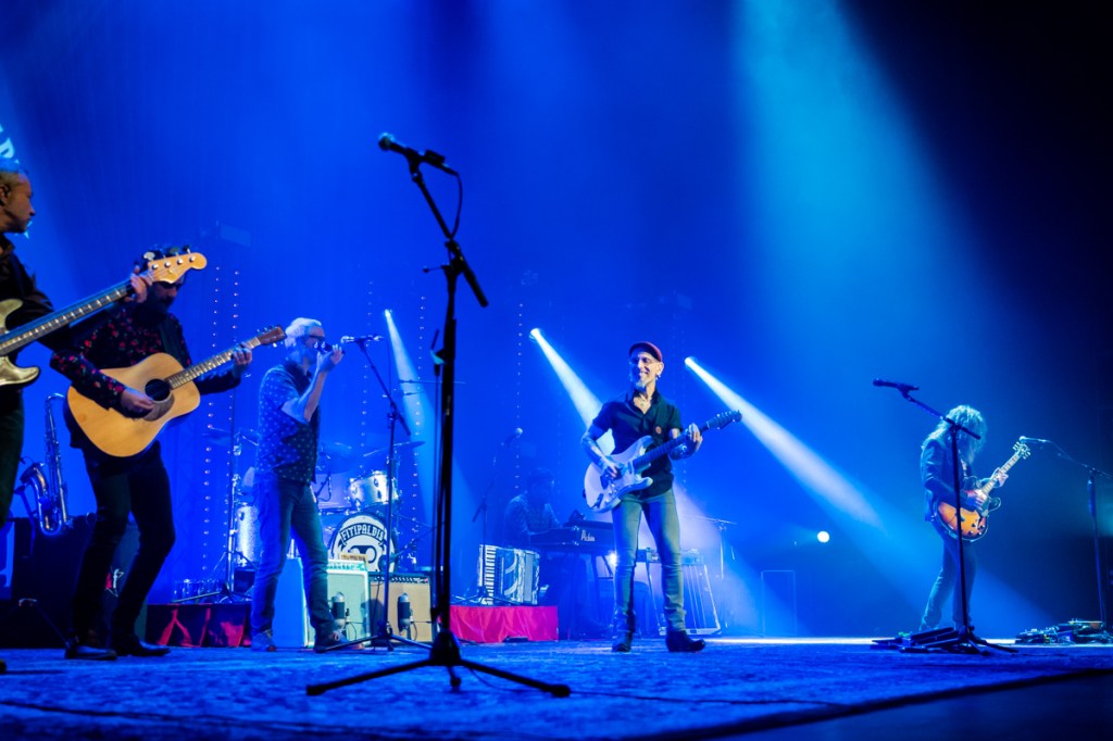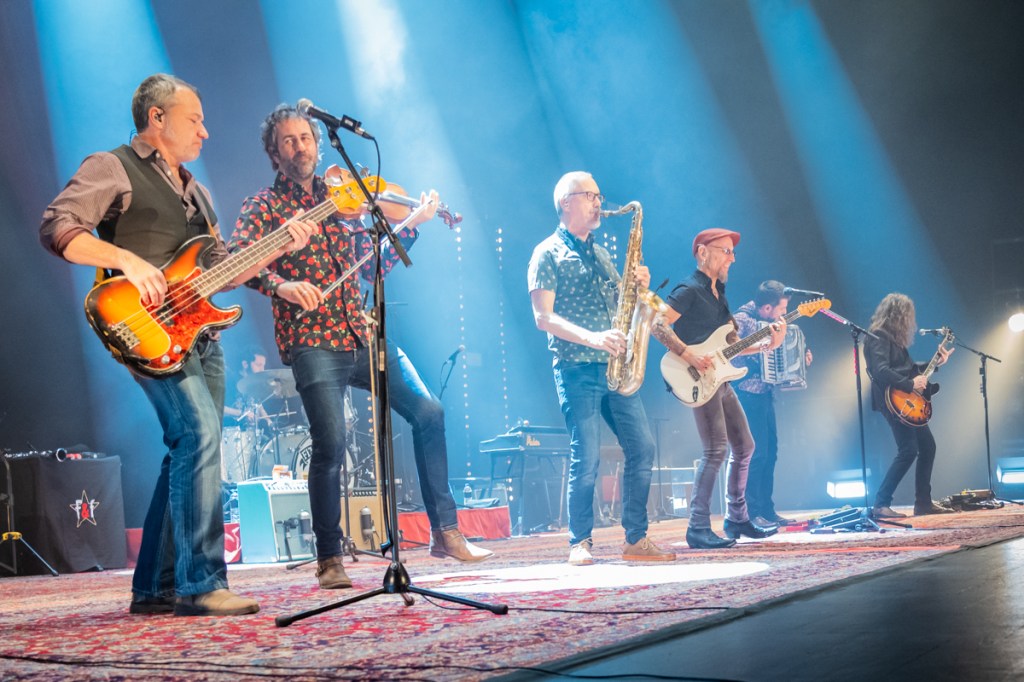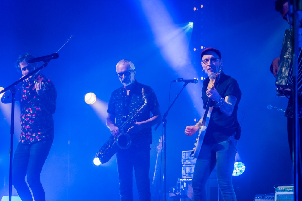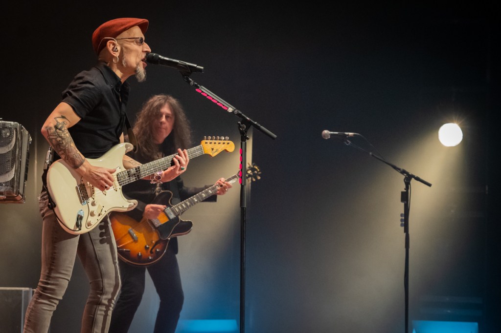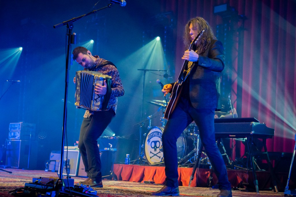 “Catorce Vidas Son Dos Gatos” es el momento más raquítico de la noche, interpretado con sobriedad y con pocos artificios, con mención especial para el pedal Steel de Raya. Ejerce de nexo a lo que Fito vino a denominar «la parte gypsy», con los siete músicos reunidos en las alfombras. Para dicho tramo, abrirían con “Me Quedo Aquí”, un tema de Fetén Fetén que ya contó en su versión de estudio con la colaboración de Fito, que aseguraba que «es la mejor canción que he cantado en mi puta vida». Estemos o no de acuerdo, sirvió para sumergir en la atmósfera pretendida, con la continuidad de las añejas “Ojos De Serpiente”, entre la que insertó “Yo No Soy Bo Diddley”, y “El Funeral”, donde además del fantasmagórico sonido del serrucho y arco de violín de Diego, contó con un divertido momento de acordeón con Jorge, rematado con una de las danzas húngaras de Brahms, tan popularizada por Mägo de Oz.
