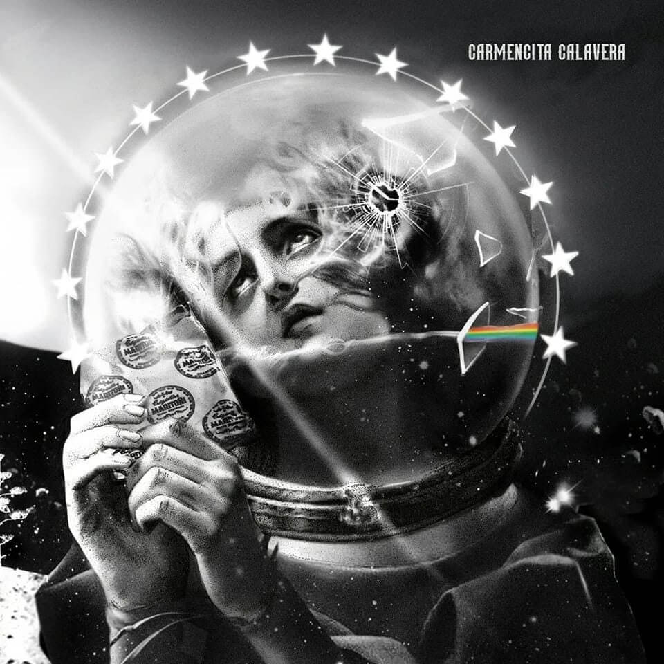 A la banda granadina Carmencita Calavera le tenía marcada la pestaña de seguimiento desde que, en el primer aniversario de la apertura pandémica, pude verles en directo por primera vez en una de las actuaciones con sillas y distancias de Cooltural Go!, el ciclo de casi cuarenta conciertos con el que Cooltural Fest regó cuatro meses de programación de mayo a septiembre de 2021. En aquella ocasión se encargaban de abrir la velada para La Pegatina y me convencieron en su aprovechada actuación de apenas cuarenta minutos. La sorpresa entonces fue de lo más agradable, con su punk equilibrado entre el old school, la serie B con tintes surf, los toques sureños en su conexión tex mex con algo de espíritu de corridos y tequila. Esa guasa y toque de humor se destila desde ya desde la portada (obra de Alhama Molina – Miss Comadres) de lo que viene a ser su tercer trabajo hasta la fecha después del álbum epónimo Carmencita Calavera de 2017 y el EP Un Día En Éxtasis de 2019. Una virgen Inmaculada portando una escafandra de estrellas que bien podrían simbolizar las de Estados Unidos o la Unión Europea, con un tiro en el cristal, un envoltorio de las míticas Maritoñi (dulce típico granadino muy popular desde la infancia post Guerra Civil) en las manos y un guiño al diseño de la portada de The Dark Side Of The Moon de Pink Floyd, con esa descomposición cromática de la luz al atravesar el prisma. Un álbum de ocho temas que viene con las garras afiladas y con una variedad de registros aun mayor que lo ya apuntado en aquel concierto. La banda está formada por Carmen Caballero a la voz, Ignacio García Medina en el bajo, Rafael Navajas en la batería, Luigi Ramos en la guitarra, a quienes se han sumado Wilma Lorenzo en los teclados y Migue Romero a la trompeta.