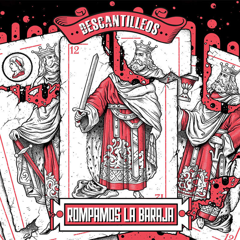 Entre las numerosas recomendaciones que me llegan, ya sea de forma directa por las bandas o de lectores que conocen la amplitud de oídos que nos gastamos en esta casa, hay ocasiones en las que, una vez escuchado y valorado el disco en cuestión, me apetece echar unas líneas para que la cadena siga rodando y difundiendo la ilusión con la que tantas y tantas bandas emergentes se curran sus primeras canciones, grabaciones y, como es este caso, su debut discográfico. Así llega hoy Descantilleos. Una formación que nació a finales de 2011 de la mano de los hermanos Dani (voz y guitarra rítmica) y Jordi Lleonart (batería), que antes de llegar a hoy se ha autoproducido dos maquetas y realizado un buen puñado de conciertos por todo el país. «Nuestro propósito durante todo este tiempo siempre fue disfrutar del proceso y aprender lo máximo posible de cada experiencia». Ahora, en este primer álbum el cuarteto se completa con Johnny Kerchief a la guitarra solista y Marcos Corcoba al bajo. Para su grabación han contado con la producción de Carles Salse (Exceso, Xtasy, Elisa C. Martin) en Sureau Studio de Matadepera (Barcelona). Ha sido mezclado por Sebastian Sendon (Bleed from Within, Lampr3a, The Broken Horizon…) y masterizado en Suecia de la mano de Erik Martensson (Eclipse, W.E.T., Therion…). Portada y dibujos (puesto que cada canción tiene su propia portada) de Toni Galván, habitual de los también recomendables Crim. Un álbum sobre todo rock, con trazas de punk melódico y, en ocasiones, algo de mala lecha de recuerdos metaleros por la vía Lemmy Kilmister. Hoy, Rompamos La Baraja.