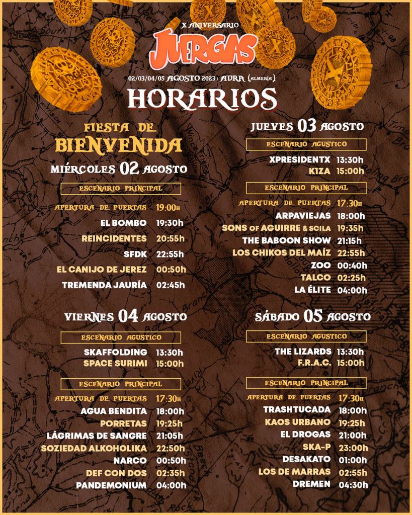 Horarios X The Juergas Rock Festival 2023, del 2 al 5 de agosto