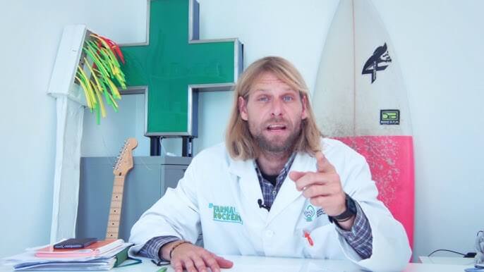 Para esta recta final de mes de julio me ha dado por traer temillas curiosos a la web. El lunes, hacíamos una interesante entrevista a Eme DJ, discjockey que colabora con frecuencia en causas sociales y a la que no le importó dar voz al problema de la salud mental en el mundo artístico. Ayer, dábamos un poco de luz al comando del grupo de punk enmascarado DaCat, que viene realizando una curiosa campaña de promoción en los últimos meses (mandamientos y programa electoral incluidos), antes de lo que será el lanzamiento definitivo de su primer disco (llevan tres singles) y quién sabe si su desenmascaramiento definitivo. Para hoy y mañana quiero recuperar otros dos temas que en su día saqué en la extinta web de Rock Estatal, hoy ya hasta con el dominio en venta. Jon Vocalo, el Farmarockero, es el nombre artístico de Juan Ruiz Golvano; Jon. Aunque nacido en Bilbao, ha desarrollado toda su actividad cómo farmacéutico en Cantabria, donde desde 2014 forma parte de la junta de gobierno de el Colegio Oficial de Farmacéuticos. Aficionado a la música, integrante de la ruidosa pero melódica banda 5000rpm, le gusta el Surf, el skate, cualquier deporte y la naturaleza. A comienzos de 2016 lanzaba su primer trabajo en solitario, un proyecto pedagógico y musical con canciones y videoclips didácticos. Para presentarlo en sociedad rockera, tomé prestada la frase de la canción “El Hombre Medicina” de Siniestro Total, que siempre me ha flipado. Canciones alegres, llenas de ejemplarizantes consejos higiénico-sanitarios, nutricionales y valores éticos, con los que completaba sus charlas en colegios. ¿Quién iba a decir que el Rock entraría a una farmacia y no para ‘dar el palo’ como en “La Carrera” de Dosis Letal (posteriormente recuperada por Extremoduro)?