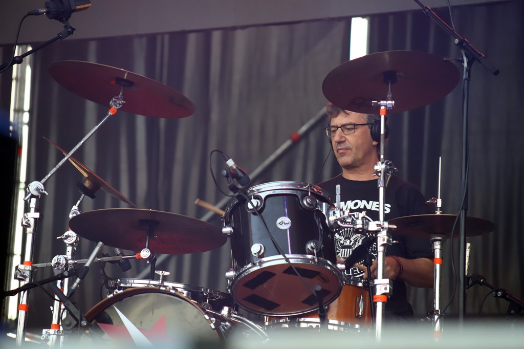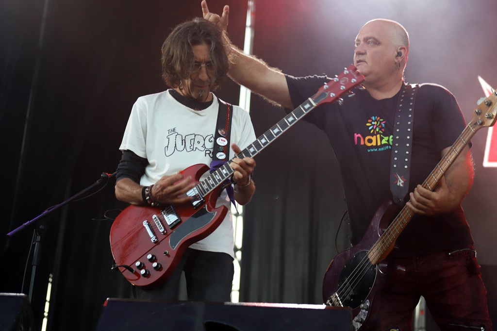 Aunque hace ya un par de años y medio que se hizo oficial la salida de Finito De Badajoz de la banda y su reemplazo a cargo de Javi Chispes, tras la edición del año pasado, quería volver a ver las prestaciones de Reincidentes con la nueva alineación, donde, claro está, siguen Barea y los sempiternos Fernando Madina y Manuel Pizarro. Hace años que vengo diciendo que las formaciones archipresentes en los festivales cada año (véase los Boikot, Porretas, Reincidentes o compañía…) le sientan mejor las horas diurnas (o, al menos, alejadas de la madrugada) por la propia infrecuencia en sí misma y porque esas hechuras hímnicas parecen lucir más a primera hora. Claro está que ninguna de estas bandas es ‘culpable’ de que todos los que llevamos bastantes años moviéndonos en esto le hayamos visto una veintena de veces. Se hace difícil sorprender y podemos tener una sensación de déjà-vu constante pero, aún así, la actuación de Reincidentes en The Juergas Rock estuvo en la media alta. Quizá fue porque había escuchado y leído opiniones de una acusada levantada del pie del acelerador, pero fue algo que solo percibí en un par de temas (por ejemplo, en “Aprendiendo A Luchar”). “Camela 3”, “Grana y Oro” y “Un Día Más” sonaron con la contundencia de siempre. Entre las ‘infrecuentes’ del repertorio, mención para “Rock And Roll”, “Terrorismo”, “La Cuneta Del Olvido” o “Hijos De La Calle” (en la que no faltó el recuerdo para Albertucho). También sentó bien el ‘adelanto’ de “Jartos De Aguantar” a la primera parte del repertorio. «Parece mentira que a las alturas que estamos haya quien niegue que existe la violencia de género», apuntó Madina antes de clamar “¡Ay, Dolores!”. Como hace Marea con “El Trompo”, fue bonito el recuerdo sentido a Boni al recuperar su “Explosivo”. En el tramo final, quedaría las bien situadas en pareja “Cucaracha Blanca” y “Rip Rap” o “La Republicana”, para cerrar con unos bises cien por cien de la tierra al marcarse la flamenca “Jornaleros Andaluces”, con “El Sur”, “Andalucía Entera” y su versión de “Andaluces, Levantaos”.