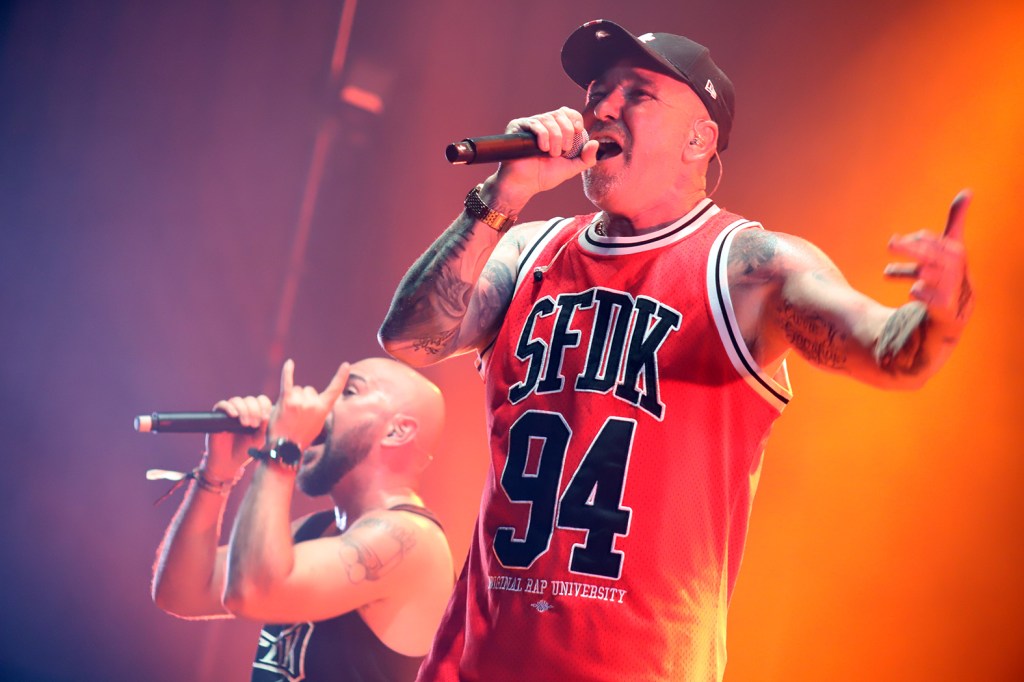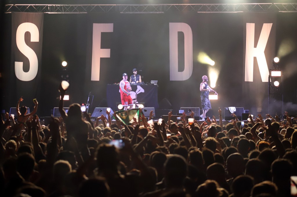 En la variedad, denominador común de cada día, tocaba el momento de sacar las gorras y las camisetas de basket para el rap festivo de SFDK. Reconozco que los sevillanos me ganaron el año pasado el tramo que les vi porque su rap tiene matices más de fiesta que purista y su actitud es más propia de rockstar que de un MC al uso. Hasta Acción Sánchez sacó un plato integrado en una silueta de guitarra, por si quedaban dudas. Arrancaron con “Un Pobre Con Dinero”, “Lucifer” y “Todo Lo Que Importa”, que fueron suficientes para saber que no iban a guardarse nada en la casi hora y media de espectáculo. Columnas de humo de hielo líquido y algún que otro fogonazo (como si hiciera falta calor en estas fechas) siguieron azuzando un concierto de nuevo sacudido de escenario en escenario. “El Blues Del Condenado”, “Está To’ Feo”, “Twitter” o “Pruébalo” siguieron prendiendo la noche con otros bien medidos engarces como los de “Seguiré Al Sol” y “Bajo El Mismo Sol”. Posiblemente beneficiados por esa entrada irrisoria que aprovechó buena parte de los abderitanos que no tenían el abono, causalidad o casualidad, SFDK tuvo en su honor ser uno de los conciertos con mayor lleno del festival y todo remó a favor de causa con un repertorio con una gran escala final. “El Niño Güei”, “Orgullo Bandillero”, “De Costa A Costa” o ese “El Liricista En El Tejado”, dieron buena cuenta de ello. La bullanguera “Ringui Dingui”, “Ovarios y Pelotas”, “Agua Pasá”, “Orgullo Tirititero” y “Defectos y Taras” terminaron de culminar la satisfacción del deber cumplido.