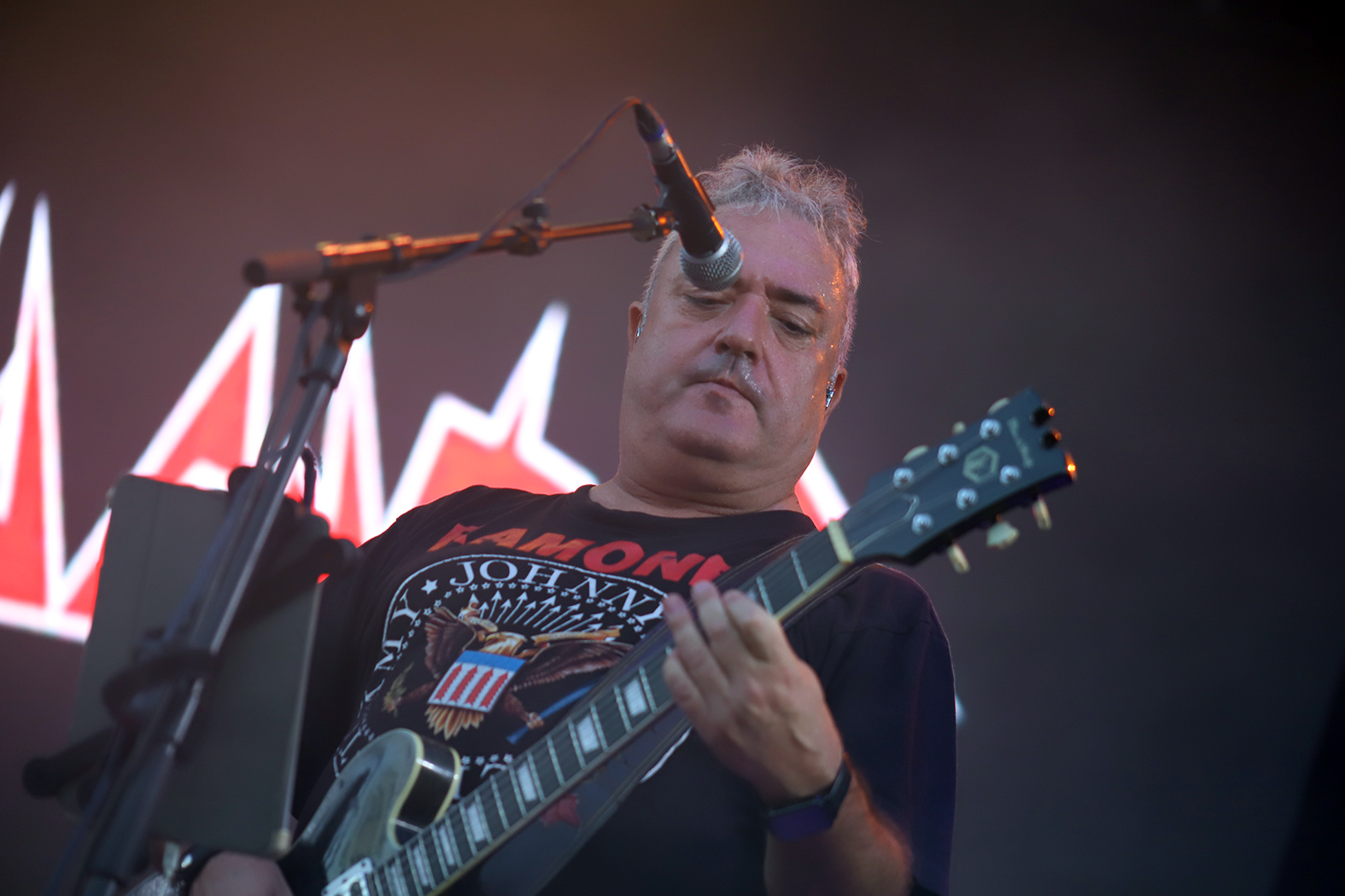 Aunque hace ya un par de años y medio que se hizo oficial la salida de Finito De Badajoz de la banda y su reemplazo a cargo de Javi Chispes, tras la edición del año pasado, quería volver a ver las prestaciones de Reincidentes con la nueva alineación, donde, claro está, siguen Barea y los sempiternos Fernando Madina y Manuel Pizarro. Hace años que vengo diciendo que las formaciones archipresentes en los festivales cada año (véase los Boikot, Porretas, Reincidentes o compañía…) le sientan mejor las horas diurnas (o, al menos, alejadas de la madrugada) por la propia infrecuencia en sí misma y porque esas hechuras hímnicas parecen lucir más a primera hora. Claro está que ninguna de estas bandas es ‘culpable’ de que todos los que llevamos bastantes años moviéndonos en esto le hayamos visto una veintena de veces. Se hace difícil sorprender y podemos tener una sensación de déjà-vu constante pero, aún así, la actuación de Reincidentes en The Juergas Rock estuvo en la media alta. Quizá fue porque había escuchado y leído opiniones de una acusada levantada del pie del acelerador, pero fue algo que solo percibí en un par de temas (por ejemplo, en “Aprendiendo A Luchar”). “Camela 3”, “Grana y Oro” y “Un Día Más” sonaron con la contundencia de siempre. Entre las ‘infrecuentes’ del repertorio, mención para “Rock And Roll”, “Terrorismo”, “La Cuneta Del Olvido” o “Hijos De La Calle” (en la que no faltó el recuerdo para Albertucho). También sentó bien el ‘adelanto’ de “Jartos De Aguantar” a la primera parte del repertorio. «Parece mentira que a las alturas que estamos haya quien niegue que existe la violencia de género», apuntó Madina antes de clamar “¡Ay, Dolores!”. Como hace Marea con “El Trompo”, fue bonito el recuerdo sentido a Boni al recuperar su “Explosivo”. En el tramo final, quedaría las bien situadas en pareja “Cucaracha Blanca” y “Rip Rap” o “La Republicana”, para cerrar con unos bises cien por cien de la tierra al marcarse la flamenca “Jornaleros Andaluces”, con “El Sur”, “Andalucía Entera” y su versión de “Andaluces, Levantaos”.