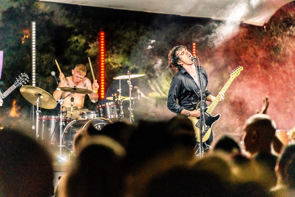 Viejo conocido de Cooltural Fest es Depresión Sonora, el título de la banda tras el que encontramos a Marcos Crespo y que, de alguna manera, y siempre desde un punto de vista artístico y musical, viene a ser casi la antítesis de sus predecesores. La música como desahogo extremo por más oscuro, denso, lúgubre y desbordante de desencanto suene. Lo de Depresión Sonora ha dejado de ser una rareza de llegada inmediata con aquellos dos temas que se hicieron virales en tiempos de pandemia, dada la sensibilidad apocalíptica (exterior e interior) de entonces para ser un realidad consolidada con su álbum “El Arte De Morir Muy Despacio”, nombrado entre los discos del pasado año en medios especializados como RockSesión. Sonidos de sintes, guitarras deliciosamente lúgubres, voces lánguidas y graves, cercanas a veces a un recitado de mínima modulación tonal, pero de una efectividad brutal, en parte a unas programaciones inteligentísimas. Temas como “Introducción a la Entropía”, “Bienvenido Al Caos”, “Fumando En Mi Funeral”, “Dónde Están Mis Amigos”, de evocador título a Extremoduro, o las añejas “Apocalipsis Virtual” o “Gasolina y Mechero” incendiaron la tarde de domingo en un triunfo incontestable.