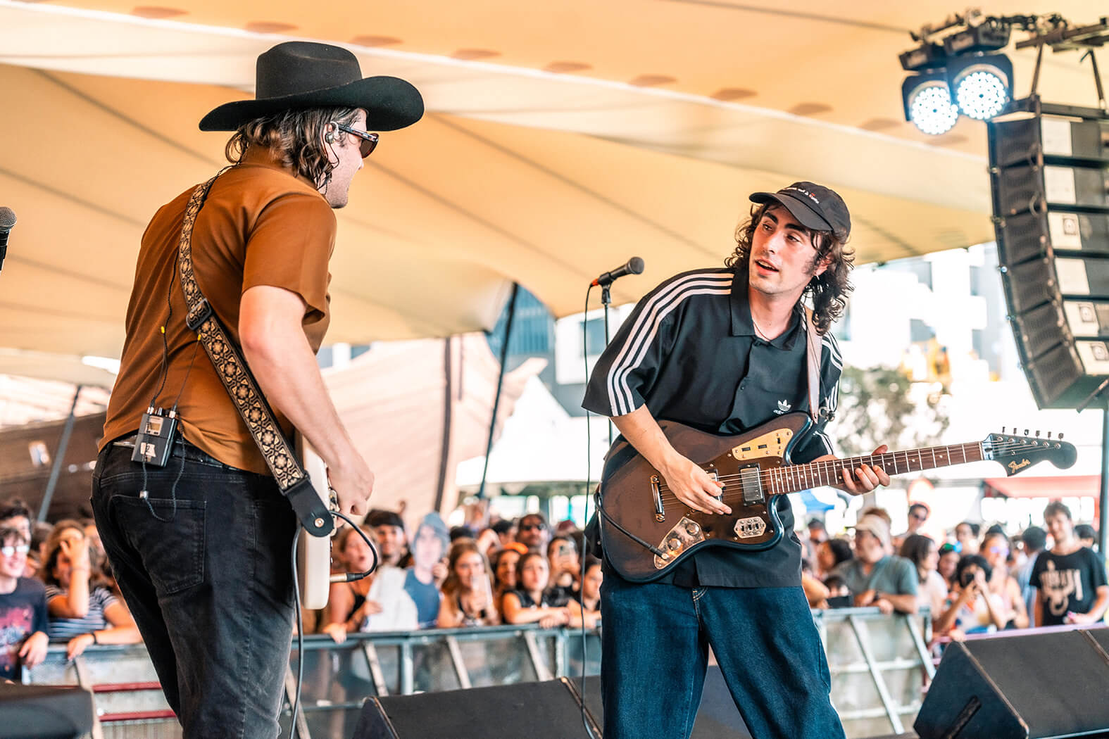 Viejo conocido de Cooltural Fest es Depresión Sonora, el título de la banda tras el que encontramos a Marcos Crespo y que, de alguna manera, y siempre desde un punto de vista artístico y musical, viene a ser casi la antítesis de sus predecesores. La música como desahogo extremo por más oscuro, denso, lúgubre y desbordante de desencanto suene. Lo de Depresión Sonora ha dejado de ser una rareza de llegada inmediata con aquellos dos temas que se hicieron virales en tiempos de pandemia, dada la sensibilidad apocalíptica (exterior e interior) de entonces para ser un realidad consolidada con su álbum “El Arte De Morir Muy Despacio”, nombrado entre los discos del pasado año en medios especializados como RockSesión. Sonidos de sintes, guitarras deliciosamente lúgubres, voces lánguidas y graves, cercanas a veces a un recitado de mínima modulación tonal, pero de una efectividad brutal, en parte a unas programaciones inteligentísimas. Temas como “Introducción a la Entropía”, “Bienvenido Al Caos”, “Fumando En Mi Funeral”, “Dónde Están Mis Amigos”, de evocador título a Extremoduro, o las añejas “Apocalipsis Virtual” o “Gasolina y Mechero” incendiaron la tarde de domingo en un triunfo incontestable.