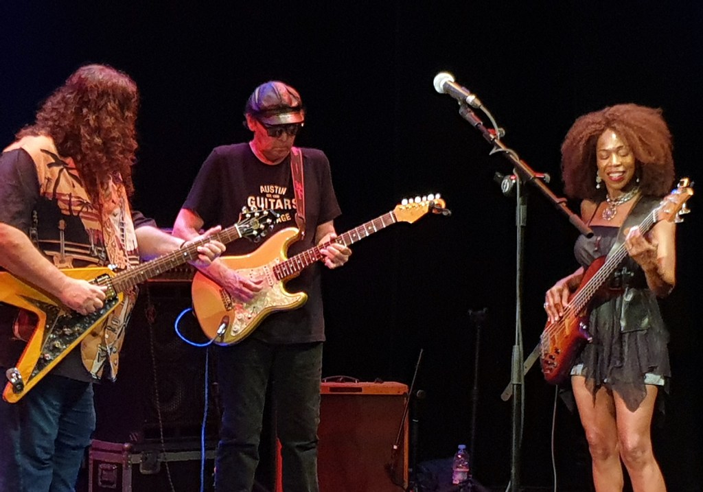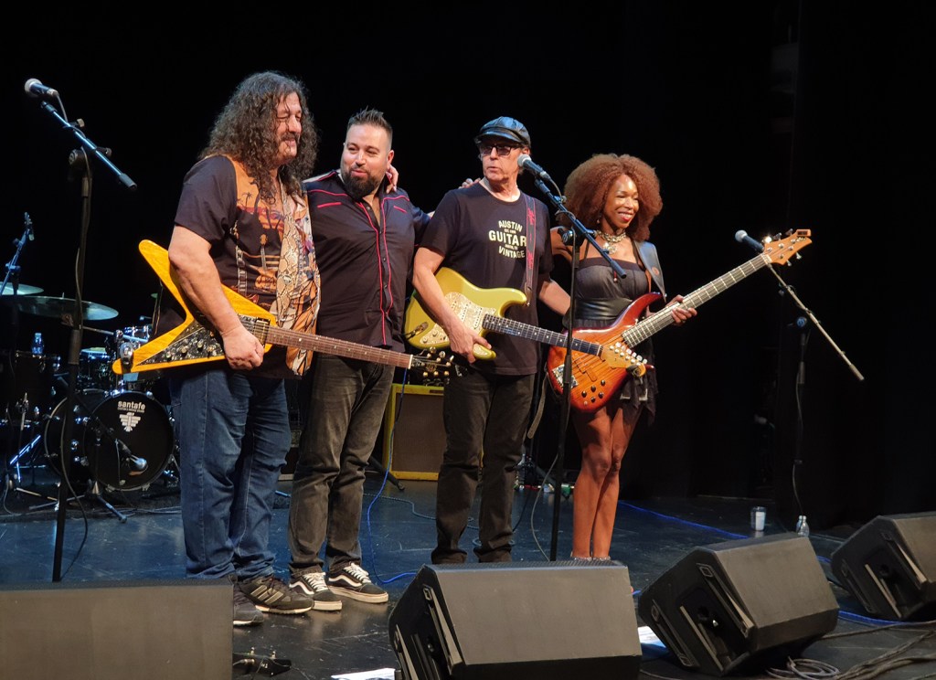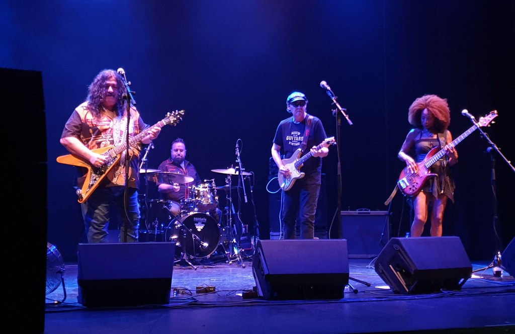 No por esperado deja de ser epatante. Los quehaceres laborales me llevaban anoche a cubrir el concierto que ofrecían sendos ‘guitar hero’ del blues y el rock como el tejano Alan Haynes, que a lo largo de su carrera ha colaborado o tocado en las bandas de Albert Collins, John Lee Hooker, Steve Ray Vaughan, Johnny Winter o Albert King, y Santiago Campillo, a quien se le tiene honores y respeto desde los primeros discos en los que estuvo en M-Clan y toda su carrera posterior, guiado siempre por una autenticidad a prueba de bombas. A estos dos monstruos se sumaba al bajo Oneida James, que fuera bajista durante trece años de un tótem como Joe Cocker, y José Ciudad, baterista especializado en estas lides que estuvo a la altura de todos sus secuaces. Una auténtica inmersión de blues, rhythm and blues, rock de todo pelaje, funk incluido. Así que, a partir de este momento, os dejo con la crónica que realizo para el Área de Cultura del Ayuntamiento de Almería a través de Contraportada – Pisadas En La Luna. Salud.